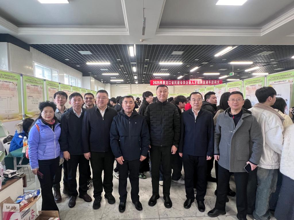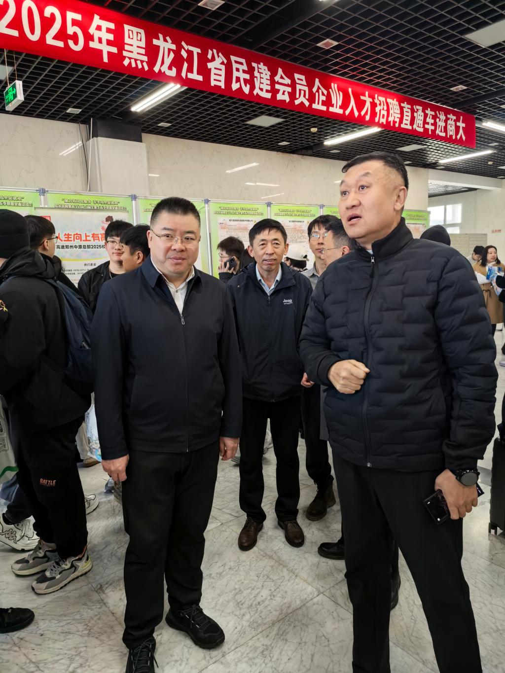 3月24日,在我校2025届春季毕业生供需见面洽谈会召开之际,我校民建支部成功举办第八次黑龙江省民建会员企业人才招聘直通车活动。民建省委副主委孙志勇、民建省委秘书长邱瑞、社会服务部部长董明先专程莅临现场,与哈尔滨商业大学党委副书记姜国峰、大学生就业创业指导中心主任潘俊峰共同开展专项调研,深入企业展位重点考察用人需求特征、实习实践政策及产教融合培养机制建设,并与现场求职学生进行深入交流。民建支部主委李恩临及支部会员全程陪同参与相关活动。