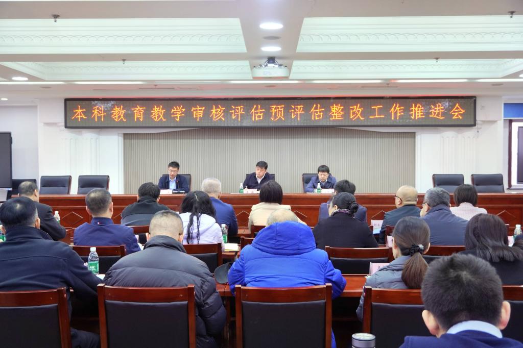 3月25日,学校在行政楼612会议室召开本科教育教学审核评估预评估整改工作推进会。党委常委、副校长王巍出席会议,各职能部门负责人、各学院院长、教学管理部门副处级以上干部参加会议。王巍主持会议并讲话。