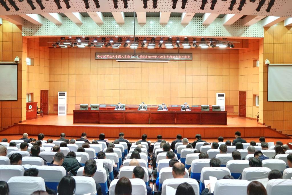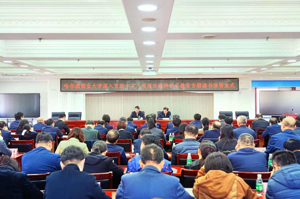 4月2日至3日,哈尔滨商业大学举办深入贯彻中央八项规定精神学习教育专题读书班,深学细悟习近平总书记关于加强党的作风建设的重要论述,深入学习领会中央八项规定精神实质和丰富内涵。读书班以领导领学、集中自学、辅导讲学、参观见学、交流研学等方式进行。学校中层以上领导班子参加读书班学习。