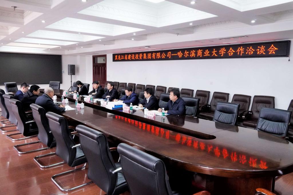赵广代表学校对周军一行表示欢迎,对黑龙江省建设投资集团对学校发展建设的支持表示感谢,并详细介绍学校发展历史、学科专业特色、发展定位规划等方面情况。赵广表示,学校将充分发挥教育资源优势,与集团在定制化人才培养、学生实习实践等多方面进行深入交流,实现人才培养与企业发展的精准对接,满足行业对高素质专业人才的需求,希望黑龙江省建设投资集团发挥自身优势,给予学校建设发展更多关注与支持。周军介绍黑龙江省建设投资集团生产经营、产业项目建设及未来发展规划等方面情况,详细介绍集团与省内高校合作开展情况。周军表示,省建投集团将整合资源优势,围绕哈尔滨商业大学布局规划和发展建设需要,打造优质精品工程,助力学校建设提档升级。双方表示,将深入挖掘资源共享、优势互补潜力,在项目建设、人才培养、实习就业等方面深化合作交流,积极推动校企合作走深走实,共同谱写融合发展、协同发展、共赢发展新篇章。