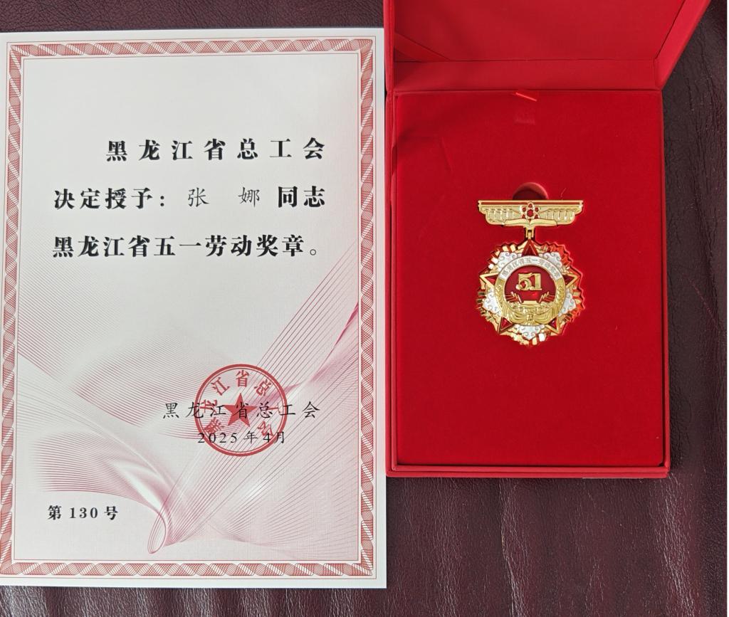 4月29日,黑龙江省总工会发布《关于表彰2025年黑龙江省五一劳动奖状、奖章(巾帼标兵)和工人先锋号(巾帼标兵岗)的决定》,我校张娜教授荣获2025年“黑龙江省五一劳动奖章”(巾帼标兵)荣誉称号。