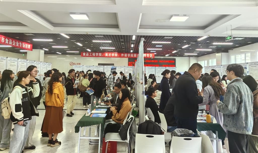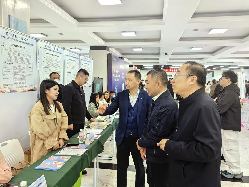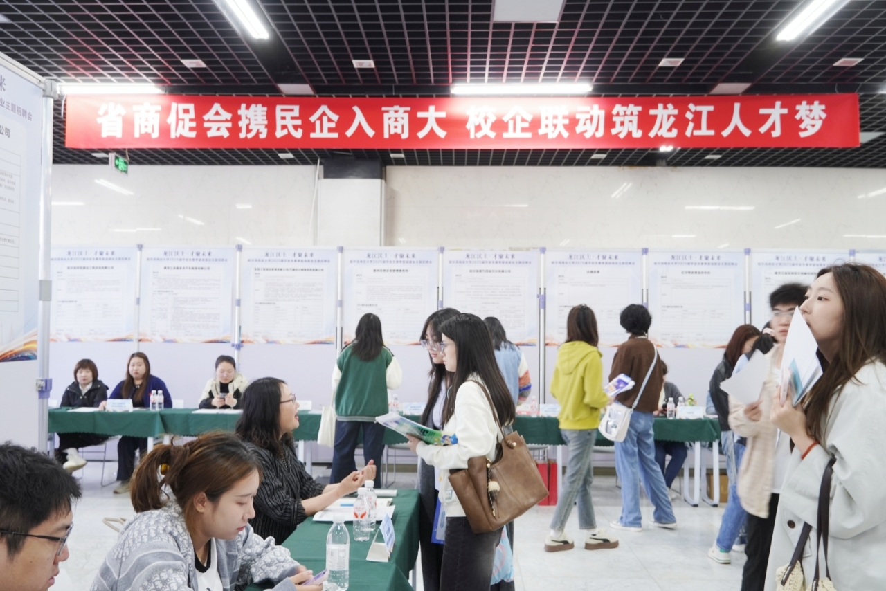 哈尔滨商业大学2025届毕业生春季留省就业主题招聘会于5月13日上午在4号楼一楼大厅举办。本次招聘会由黑龙江省教育厅高校学生处、黑龙江省大学生就业创业指导中心指导,哈尔滨商业大学大学生就业创业中心主办,黑龙江省商务合作促进会、哈尔滨商业大学食品工程学院、英才学院、外语学院以及问前程大学生就业服务平台协办。校党委副书记姜国峰到场指导,与用人单位和毕业生亲切交流,询问用人单位招聘需求及毕业生就业意向等方面情况。各学院党委书记、副书记、毕业班辅导员及大学生就业创业指导中心全体人员参会。