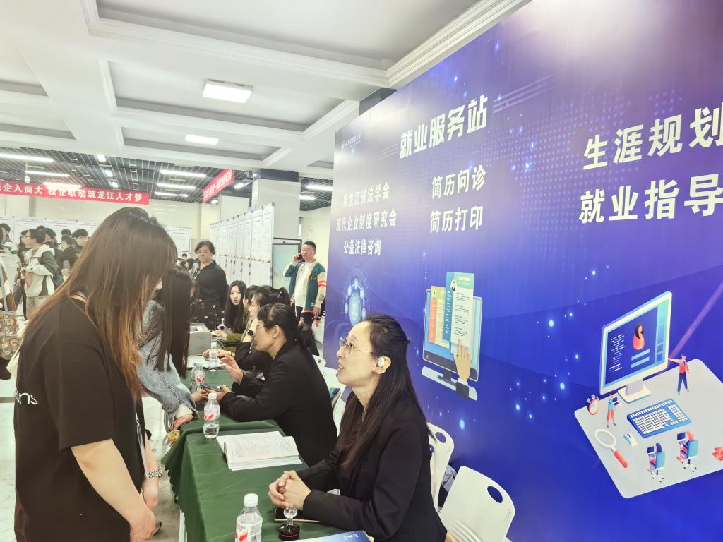 为更好地服务学生和企业,本次招聘会还设立了就业服务站。黑龙江省法学会现代企业制度研究会议在现场提供法务咨询服务,帮助学生和企业解决法律相关疑问;同时,现场还设有简历问诊、简历打印、生涯规划与指导等服务,为学生求职提供全方位支持,助力毕业生求职应聘。
