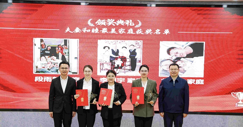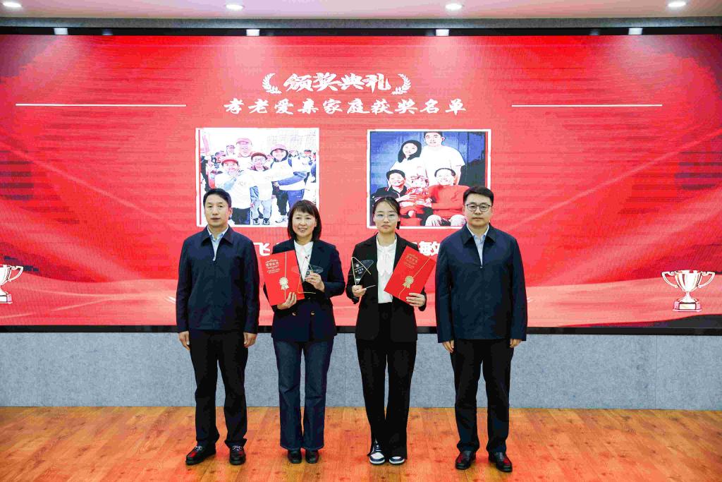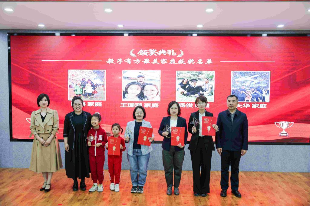 校党委副书记姜国峰与党委常委、宣传部部长贾妮燕为获得“教子有方最美家庭”颁奖
