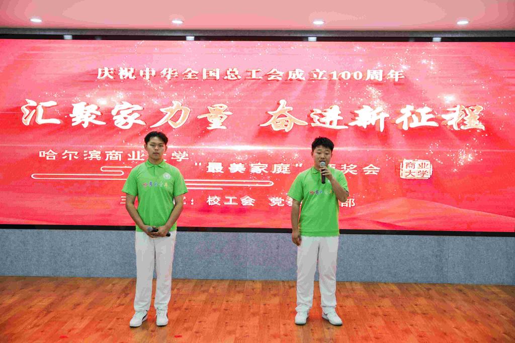 汇聚家力量,奋进新征程。为庆祝中华全国总工会成立100周年,5月22日,学校在教学四号楼4314召开“最美家庭”颁奖会。校党委书记赵广,党委副书记、工会主席田成义,党委副书记姜国峰,党委常委、副校长李景义,党委常委、副校长赵大伟出席大会;党委常委、宣传部部长贾妮燕,党委常委、组织部部长崔本强,校长助理欧忠辉,基层工会主席及基层工会干部、行政部门女干部代表、女工委员会委员、获奖教师、学生代表等参加大会。基础科学学院教师王佳喜、会计学院教师张涵主持大会。