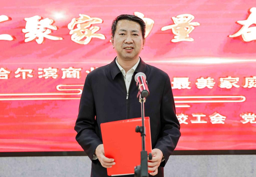 赵广代表学校党委对受到表彰的家庭表示祝贺,对校工会组织开展本次活动表示充分肯定。就弘扬优良家风,加强职工家庭建设,推进学校各项事业发展,赵广指出,要弘扬优良家风,营造发展环境,深入学习贯彻习近平总书记关于注重家庭家教家风建设的重要论述精神,重视家庭建设,打造美好和谐小家庭;各级领导干部要格外注重家庭教育,把家风建设作为作风建设重要内容,营造廉洁从政好环境;全校干部要树立家国情怀,以小家建设支撑国家建设,以良好家风营造社会主义家庭文明新风。要发挥示范作用,提升发展动力,“最美家庭”要带头做好家庭建设,作孝敬长辈、夫妻和睦、家庭和美的表率;带头以“小家”助“大家”、爱校如家,全身心投入学校工作,示范带领全校教职工为学校发展建设贡献力量,提升学校高质量发展内生动力。要认真履职尽责,凝聚发展合力,校工会要聚焦学校党委中心工作,坚决扛起引领职工群众听党话、跟党走的政治责任,切实维护职工合法权益,不断巩固党执政的阶级基础和群众基础;丰富职工业余文化生活,切实提升幸福感、获得感,为安心工作提供坚实保障。
