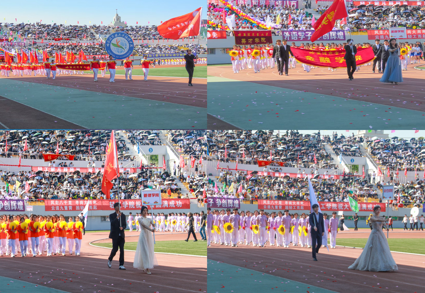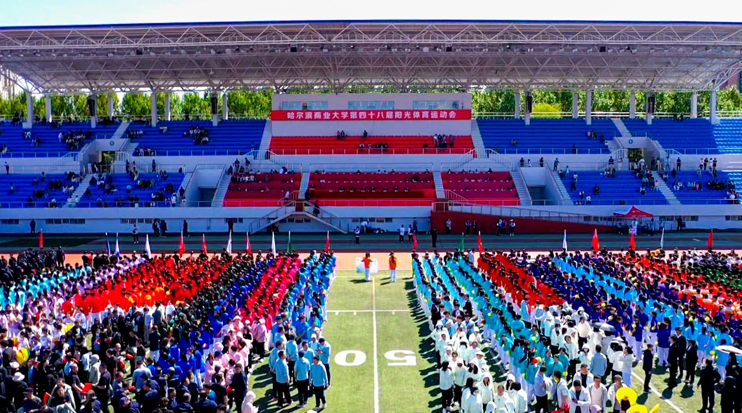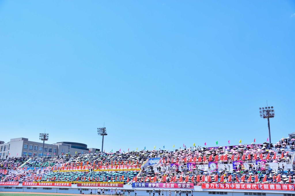 五月的商大校园,万物竞发、生机盎然。校园内一片欢腾,青春与自信齐飞,汗水与斗志并行。5月23日,哈尔滨商业大学在A区体育场举办第四十八届阳光体育运动会。在蓝天白云的映衬下,体育场上彩旗飘扬,鼓声阵阵,校党委书记赵广,校党委副书记田成义、姜国峰,党委常委、副校长李景义、赵大伟,党委常委、纪委书记、监察专员卢伯松与全校师生共同沉浸在这场充满活力与运动激情的体育盛会之中。开幕式进行了全程直播。