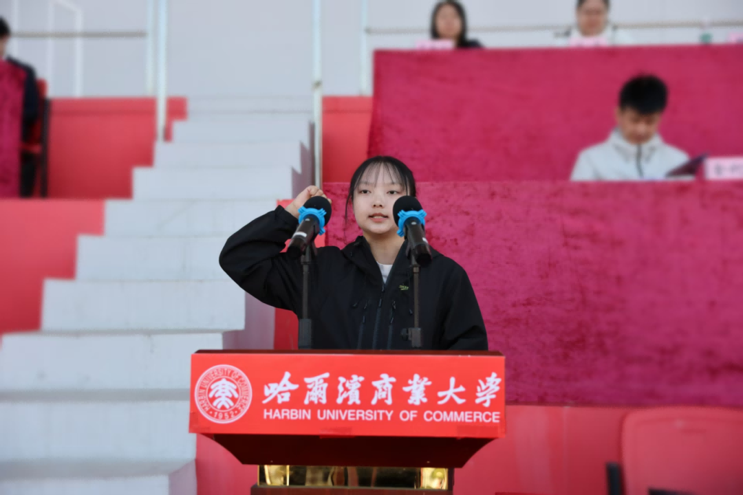 金融学院学生陈晶晶代表全体运动员宣誓