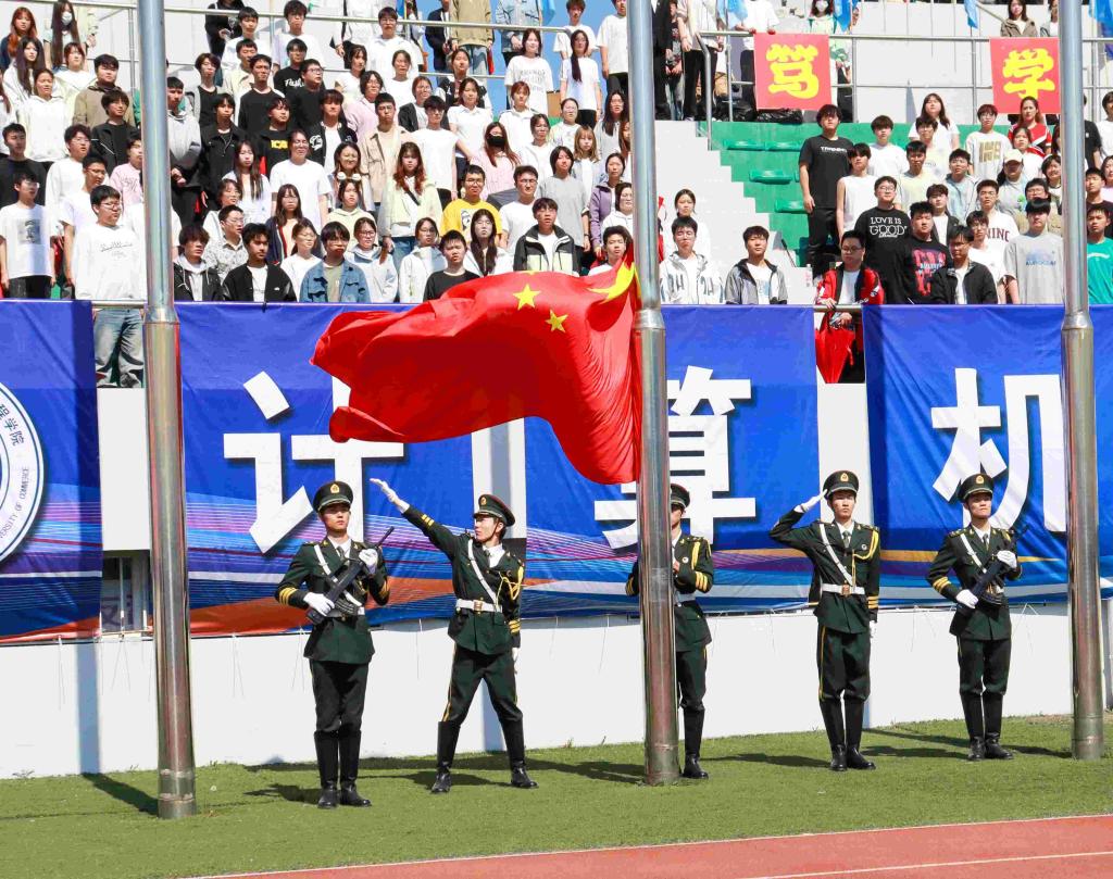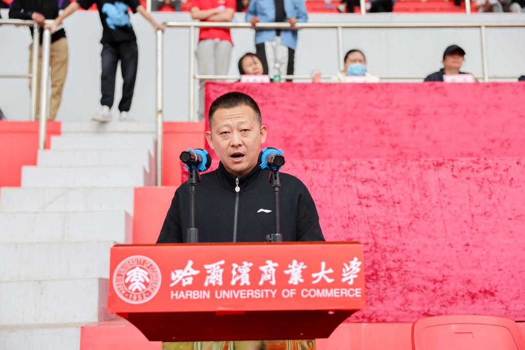 赵广致开幕词。赵广指出,多年来,学校高度重视体育工作,始终把体育教育作为人才培养的重要组成部分,充分挖掘体育资源,努力发展体育事业,在各大竞技赛事中屡创佳绩。体育运动会是我校发展体育运动、实施素质教育的重要活动,是对全校体育运动水平的一次集中检阅,也是广大师生积极参与全民体育健身活动的一次契机。希望全体运动员发扬“更快、更高、更强——更团结”的奥运精神,积极进取、努力拼搏,赛出风格、赛出友谊、赛出佳绩,赛出商大人的奋勇与豪迈;各位裁判员、教练员、工作人员要恪尽职守、认真履职,公平公正、保障安全;全体师生要遵守纪律、文明观赛,齐心助威、团结友爱,共同努力把本届运动会办成一次热烈、拼搏、文明的大会,在体育精神的激励下,以更饱满的热情、更坚定的信念,迎接学习和生活中的各种挑战,携手共创学校更加辉煌的明天。赵广预祝全体运动员取得优异成绩,预祝大会圆满成功!