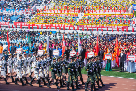 上午8时30分,第四十八届阳光体育运动会开幕式正式开始。姜国峰主持开幕式。