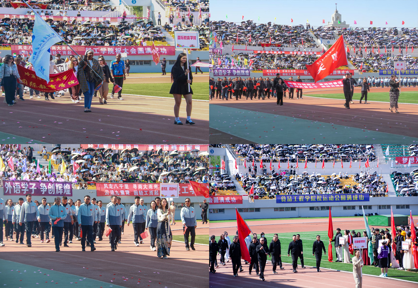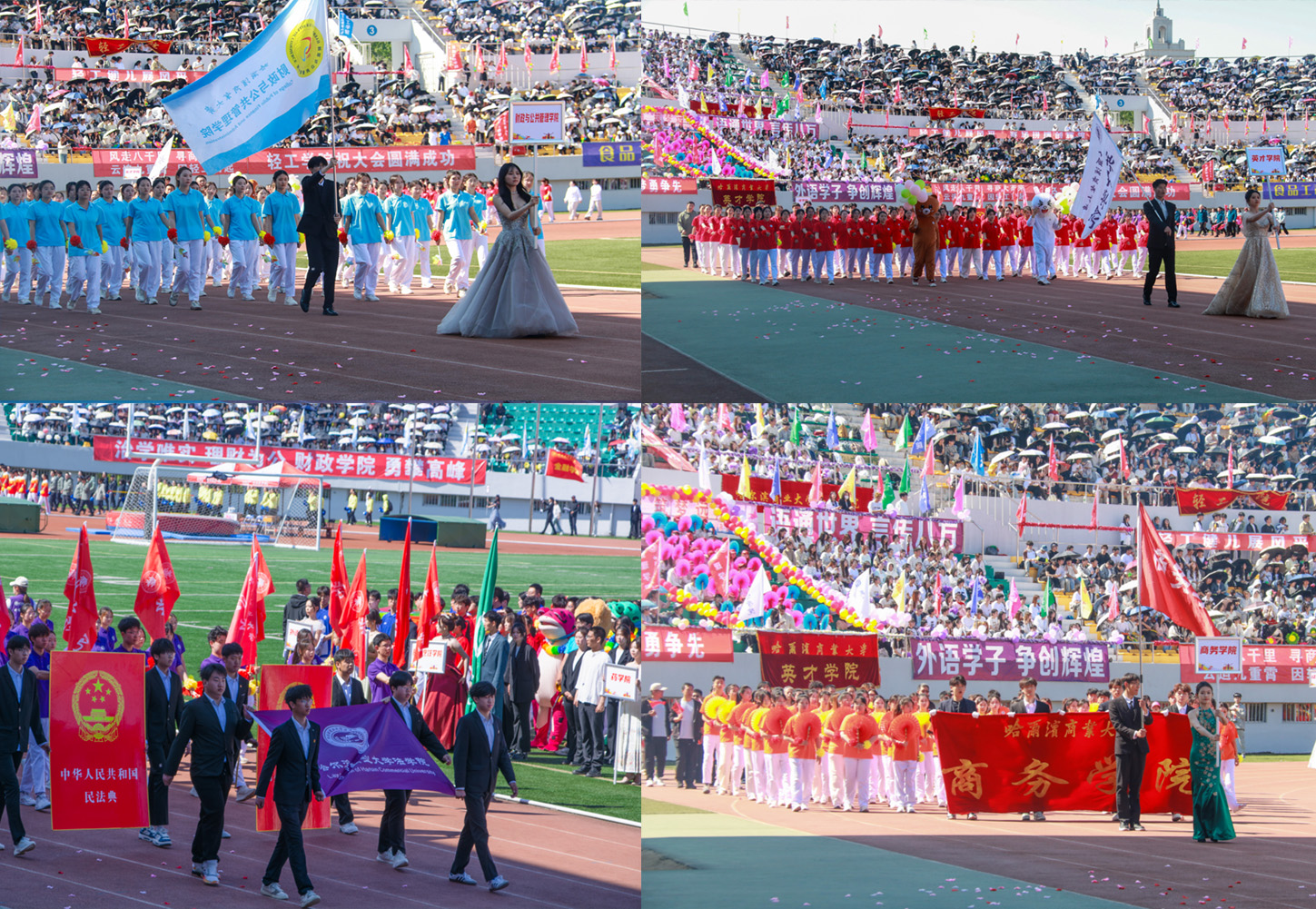 伴随着欢快的《运动员进行曲》,25支方队迈着矫健的步伐走过运动场,接受全校师生的检阅。在主席台前,各方队精神抖擞、口号嘹亮,通过精心设计的队列展示,将学科特色巧妙融入其中,尽显商大学子为学校高质量发展拼搏进取、矢志为强国建设挺膺担当的昂扬风貌。
