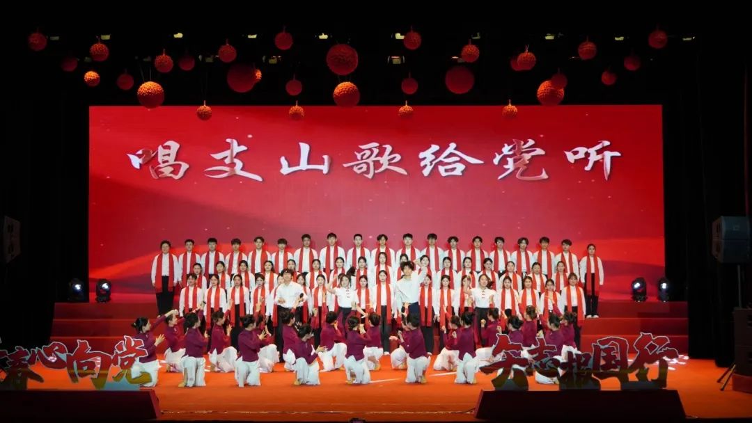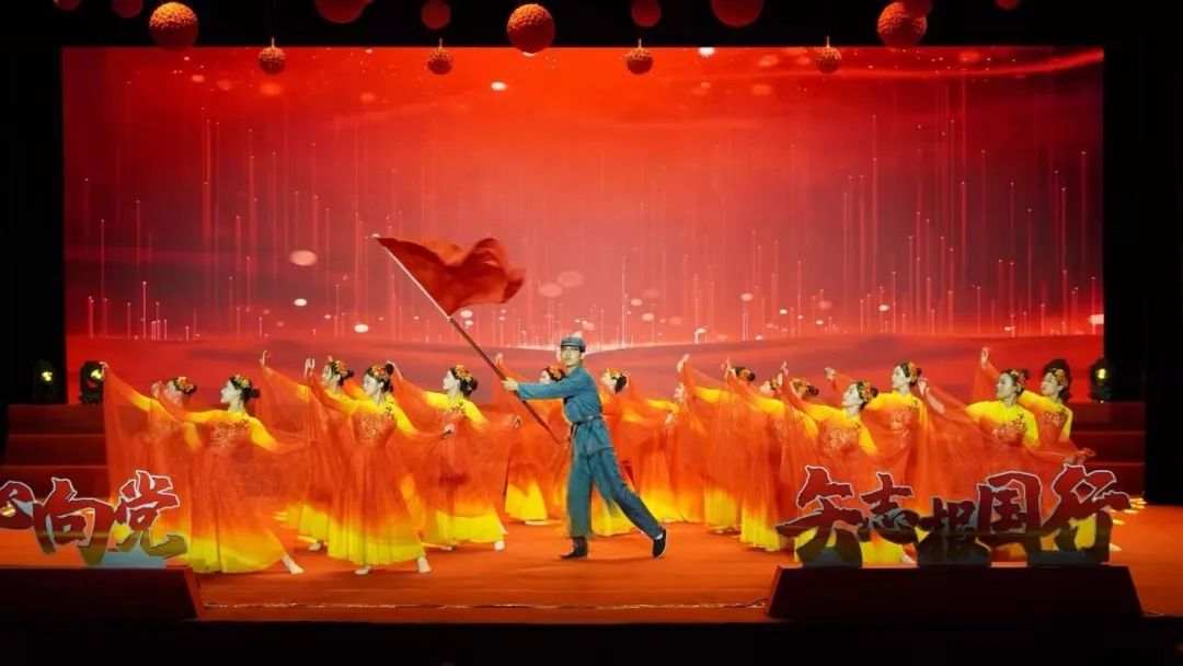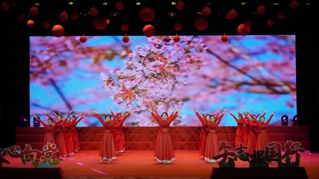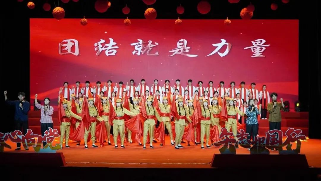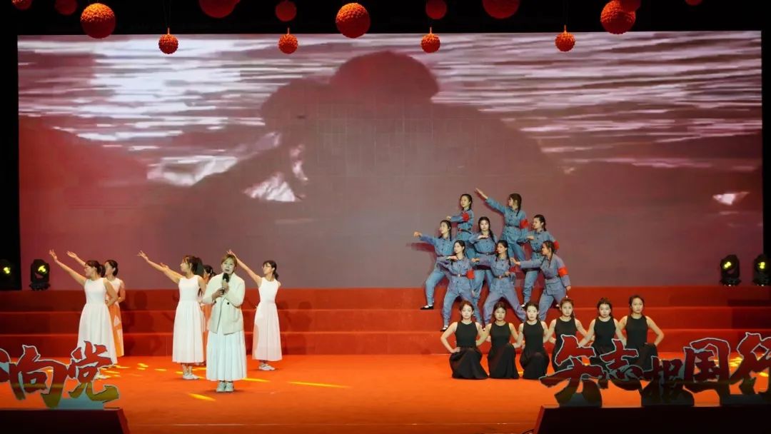 表彰结束后,青春音舞诗会在校大学生艺术团充满青春活力的舞蹈《五月的鲜花》中拉开了帷幕。本次青春音舞诗会共分为“薪火·永相传”“筑梦·山河颂”“奋斗·强国行”三个篇章,16个参演学院以诵读、舞蹈、歌曲、舞台剧等多种艺术形式,生动地展现了一代代青年赓续红色血脉、胸怀家国担当、不懈拼搏奋斗的青春风采。