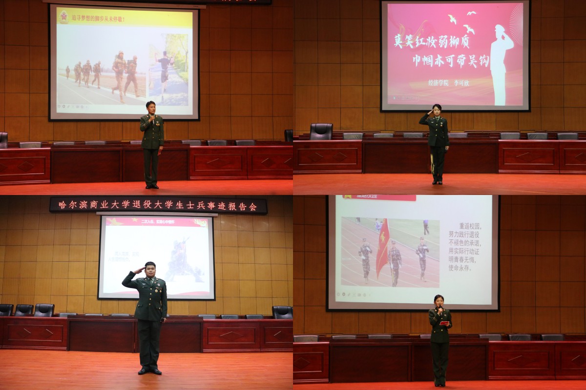 此次退役大学生士兵事迹报告会的成功举办,不仅展现了退役大学生士兵的风采,更激发了广大学子的爱国热情和报国之志。相信在这些优秀榜样的引领下,哈商大的学子们将以更加饱满的热情投入到学习和生活中,为实现中华民族伟大复兴的中国梦贡献青春力量。