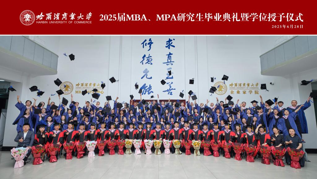 过去二十载,哈商大MBA(MPA)中心和企业家学院整合校内外顶尖资源,构建“课堂+案例+实践”三位一体培养体系,为龙江乃至全国培养了数千名具有国际视野的管理人才。本次毕业典礼,是学子成长蜕变的见证,更凝结着导师的心血与智慧。毕业生满载母校与师长的殷殷嘱托,即将开启人生新程。我们坚信,未来岁月里,他们定将赓续奋斗、奋楫笃行,以卓越的商大智慧与担当,在服务国家发展和民族复兴的壮阔征程中绽放光芒,在时代画卷中镌刻下属于哈商大MBA、MPA人的青春印记!