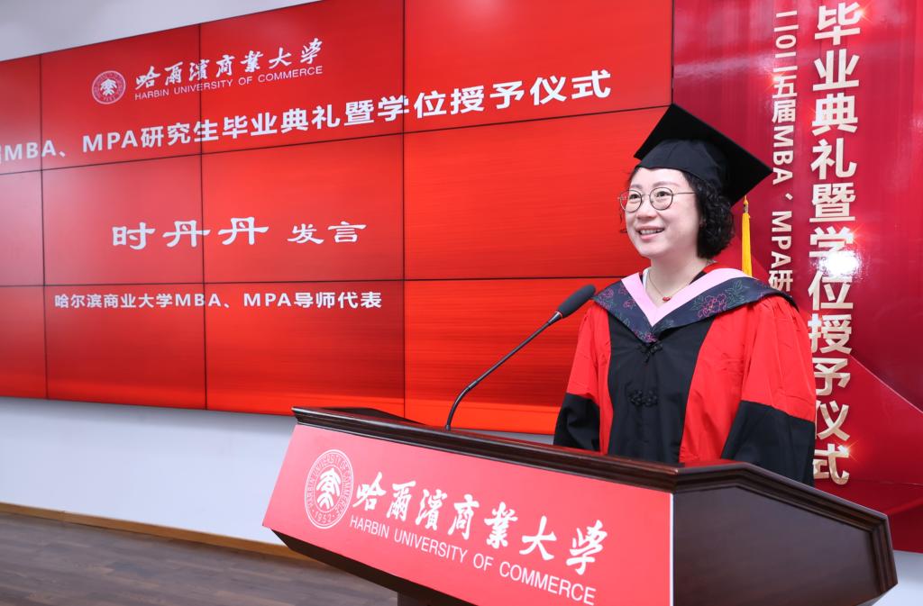 时丹丹代表全体MBA、MPA导师发言。她期待毕业生能牢记管理本质,做诚信的价值创造者;恪守责任担当,成为有使命的领路人;坚持终身学习,持续探索管理智慧。祝福学子们扬帆远航,书写辉煌。
