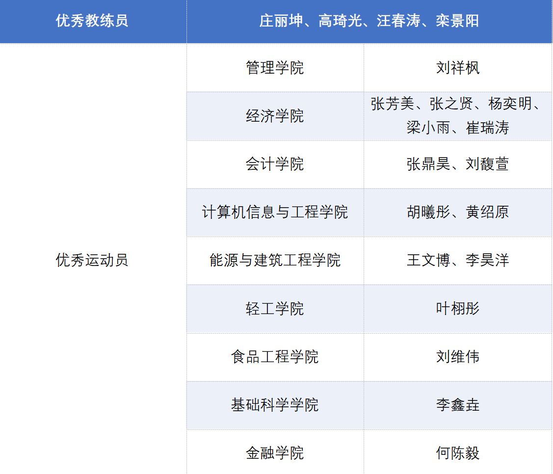 本届运动会上,熠熠生辉的不只是奖牌与成绩,更有我校一批出色的教练员与运动员获得了优秀教练员和优秀运动员荣誉称号。