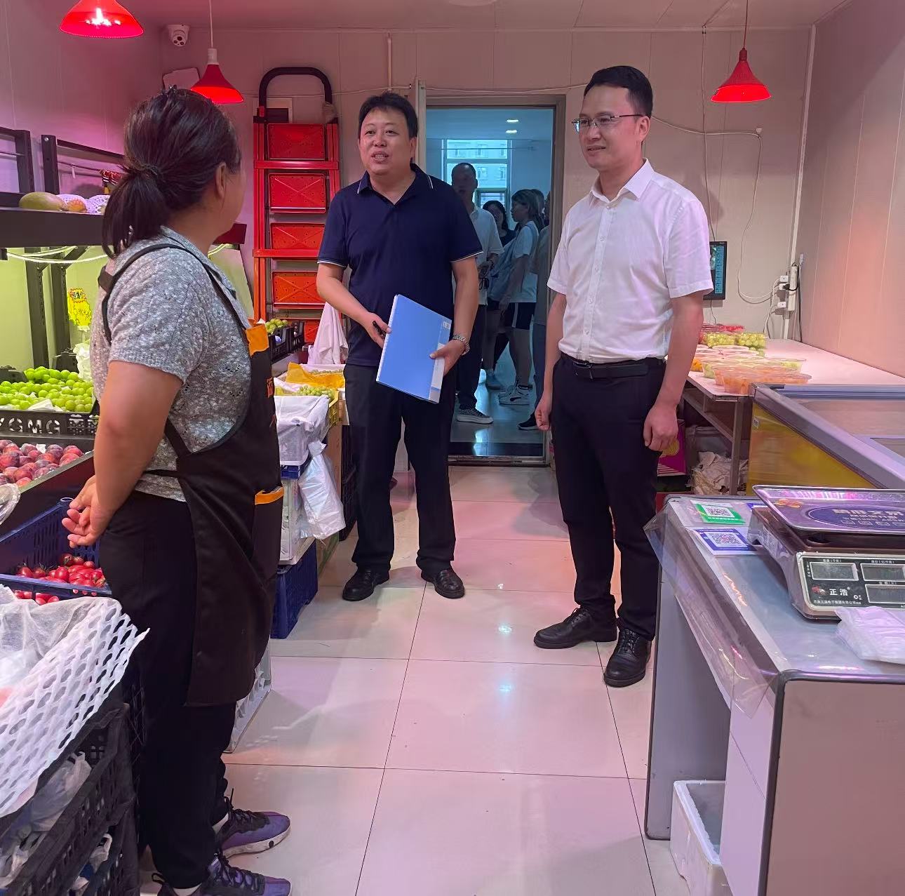 调研过程中,欧忠辉一行先后来到学校13-17栋学生公寓、体育场周边等商服场所,实地查看经营状况,与商家进行亲切沟通交流。