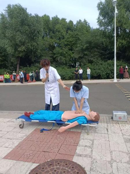 随后,校医院医护人员现场讲解急救知识,并做了实操演示。松北大道消防救援站和道里区消防大队战士分别在各校区现场演示了灭火器使用方法,并组织学生代表进行实操训练。