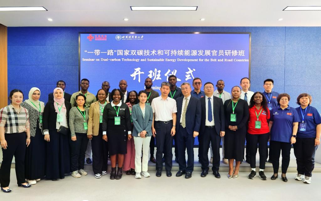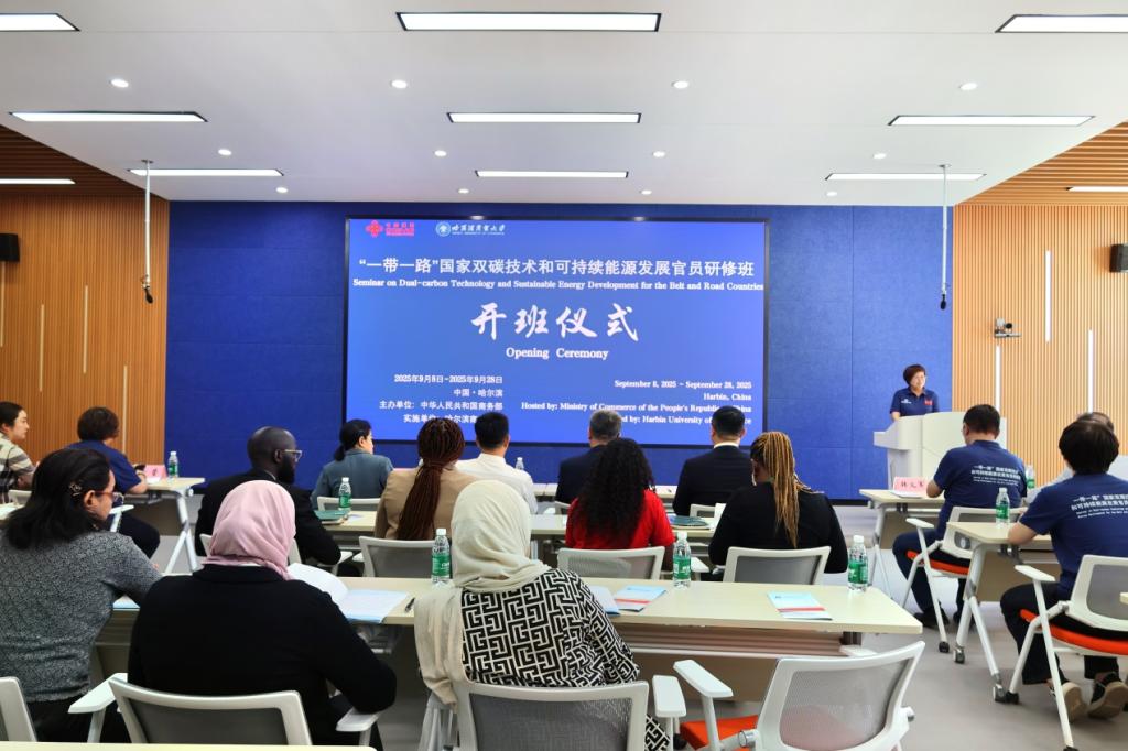 9月8日上午,由商务部主办、哈尔滨商业大学承办的“一带一路”国家双碳技术和可持续能源发展官员研修班开班仪式在我校举行。黑龙江省商务厅对外投资和经济合作处处长都书峰,黑龙江省龙建路桥股份有限公司国际工程分公司副总经理王巍,我校党委常委、副校长王福友出席开班式。学校国际交流合作处、能源与建筑工程学院等单位代表,以及来自尼日利亚、埃及、纳米比亚、冈比亚、伊拉克、南非6个国家的27名官员参加开班式。能源与建筑工程学院院长杨晓庄主持开班式。