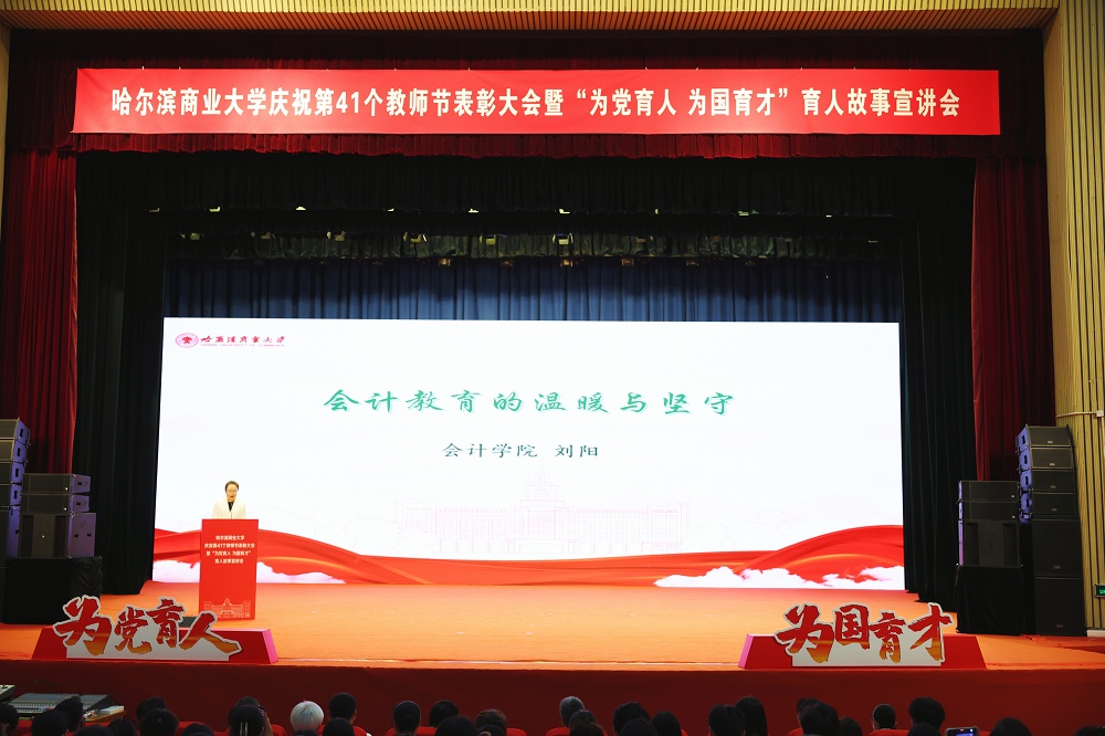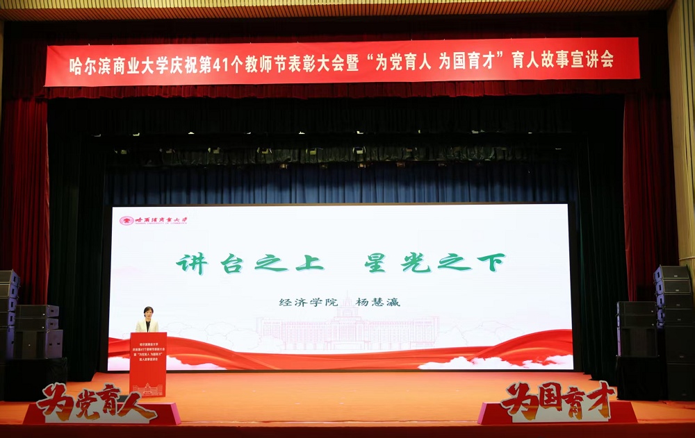 为持续推进教师思想政治和师德师风建设工作,以教育家精神铸魂强师,大会还进行了“为党育人 为国育才”育人故事宣讲。宣讲环节从教师工作部开展的“讲述我的育人故事”案例征集展示活动中邀请了四位讲述人现场宣讲。经济学院教师杨慧瀛、设计艺术学院教师朱冉、财政与公共管理学院教师魏丹、会计学院教师刘阳四位讲述人,分别以《讲台之上 星光之下》《春雨润心 静待花开》《那些关于光的答案 一名辅导员与她的“后来”》《会计教育的温暖与坚守》为题,分享他们育人旅程中的点滴瞬间,讲述他们在平凡岗位上不平凡的温暖故事。通过深情讲述他们躬耕教育战线多年的育人经历和感悟,深刻诠释教育家精神,激励全校广大教师守初心、担使命,为教育强国建设、民族复兴伟业作出新的更大贡献。