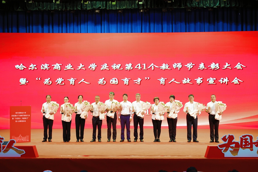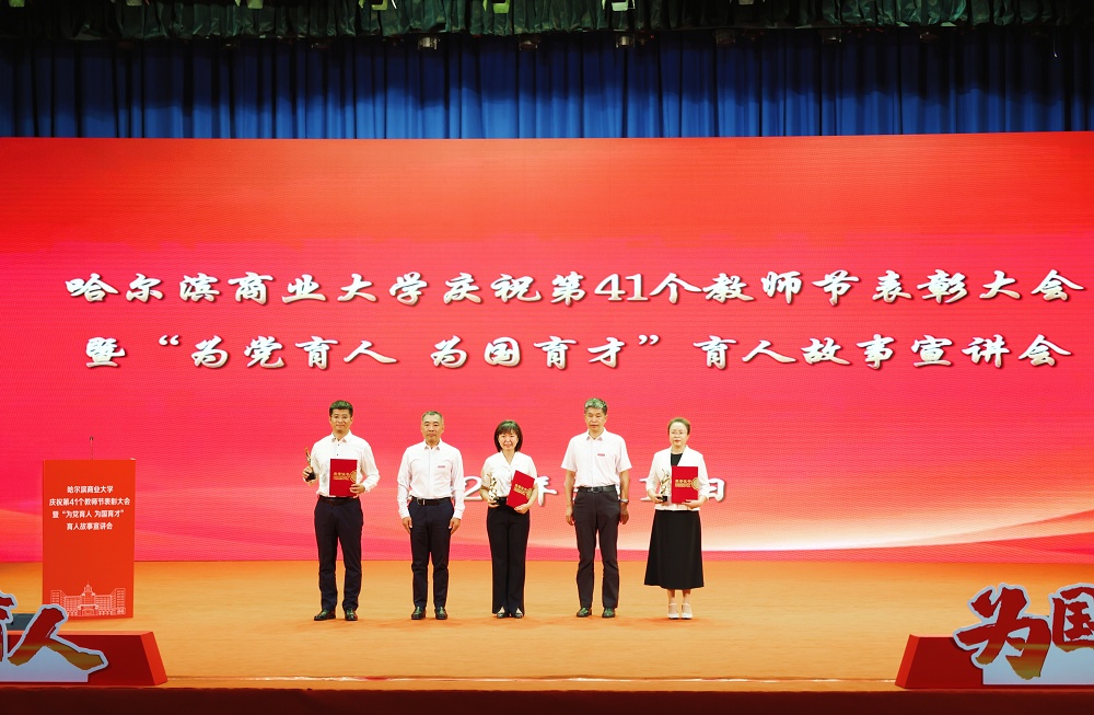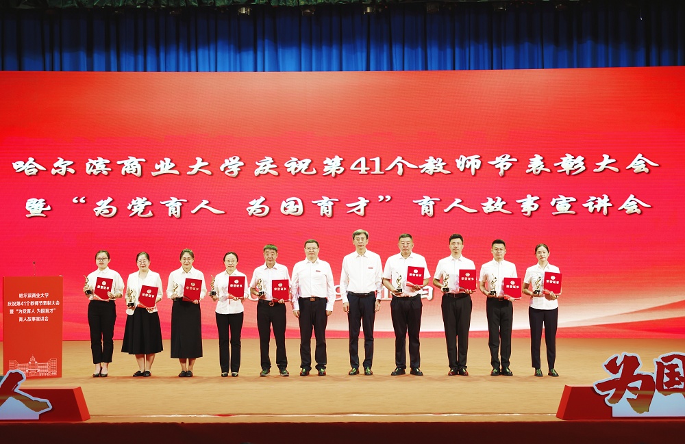 会上,党委副书记、校长李景义为从事教育工作满35周年教职工颁发奖杯。党委副书记姜国峰,党委常委、副校长王福友为获得黑龙江省五一劳动奖章(巾帼标兵)、黑龙江省教学名师、黑龙江省青年五四奖章荣誉的个人颁奖。党委常委、副校长赵大伟,党委常委、纪委书记、监察专员卢伯松为获得全国优秀易班指导教师、暑期“三下乡”社会实践全国优秀个人、黑龙江省高校辅导员素质能力大赛优秀奖、黑龙江省高校辅导员年度人物提名称号、世界消防救援锦标赛“先进个人”、第九届亚冬会志愿服务“嘉许个人”荣誉的个人代表颁奖。党委常委、副校长修国英,党委常委、副校长寇胜利为获得校级教学名师、事业单位嘉奖人员、优秀教师、先进工作者、优秀辅导员荣誉的个人代表颁奖。