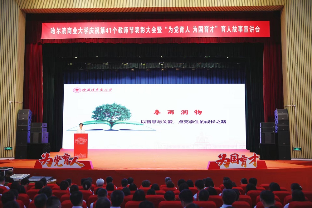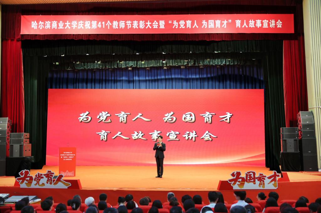 9月10日,学校在B区礼堂召开庆祝第41个教师节表彰大会暨“为党育人 为国育才”育人故事宣讲会。全体校领导、校长助理出席大会;从教满35周年教职工、受表彰教职工,全体处级干部,教师和学生代表等参加大会。校党委副书记、工会主席田成义主持大会。