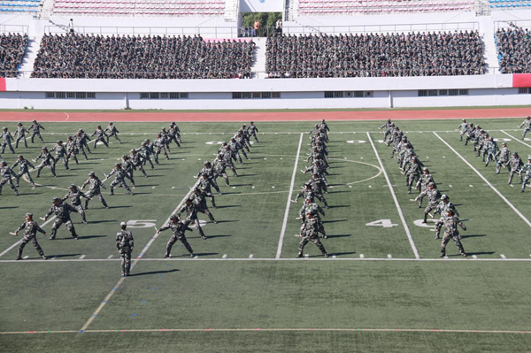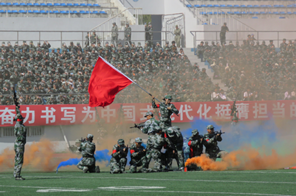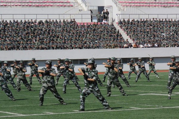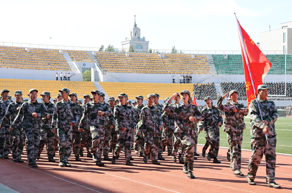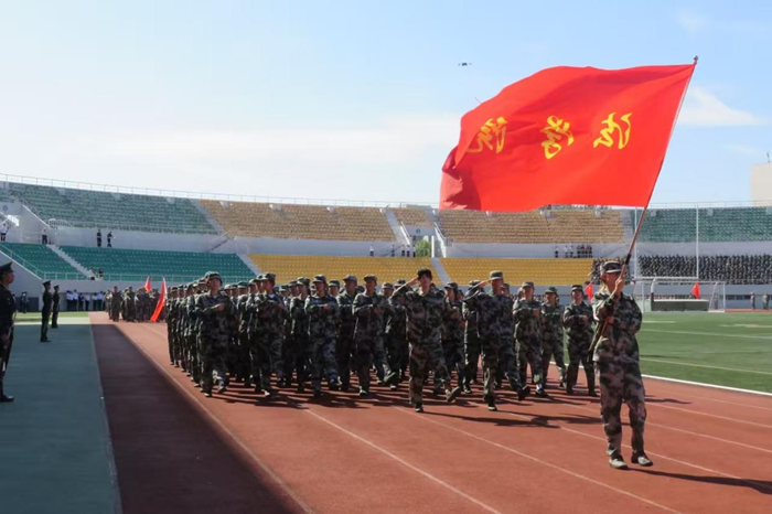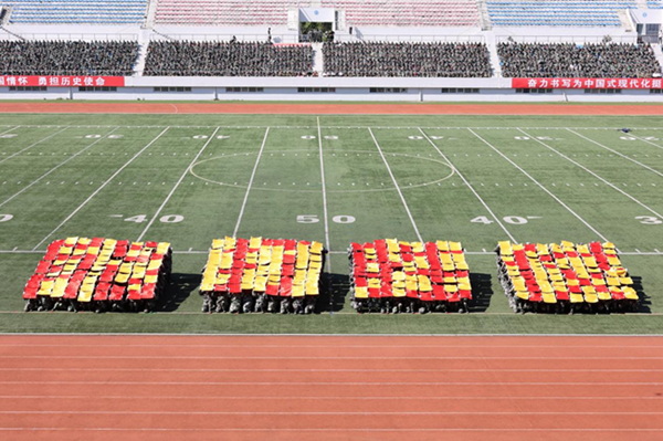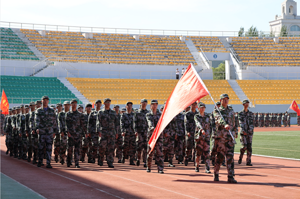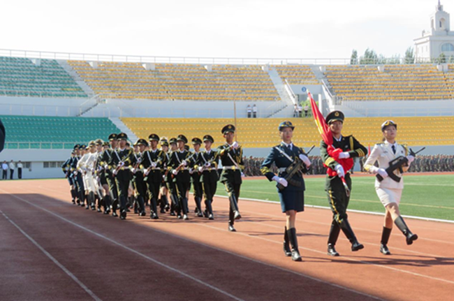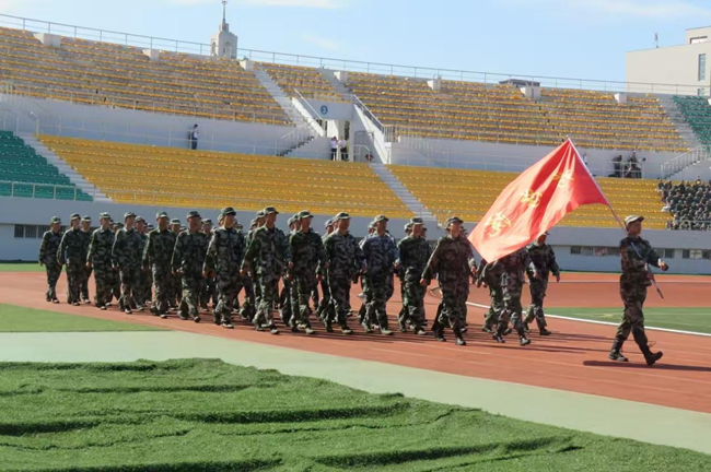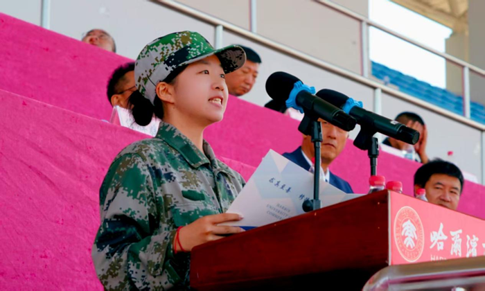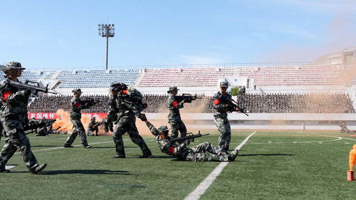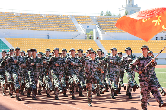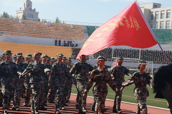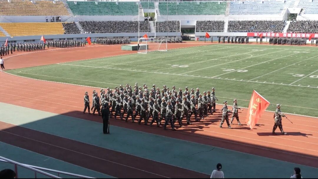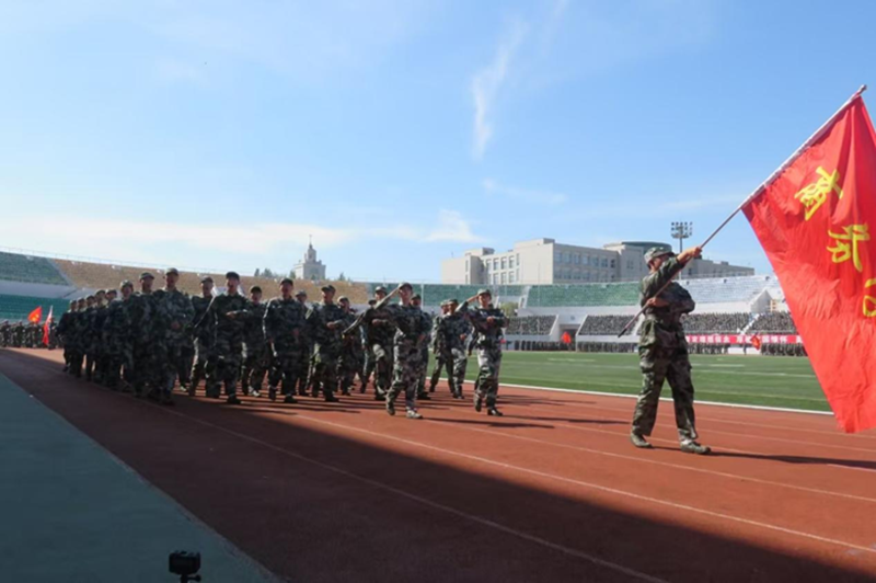 会上,2025级本科生进行了军训成果汇报表演。在分列式和特色科目展示中,同学们用挺拔的军姿、铿锵的步伐、嘹亮的口号展现了新时代哈商大学子昂扬向上的精神风貌。
