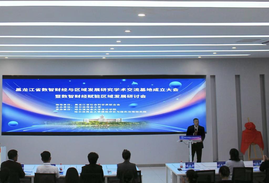 9月17日下午,由哈尔滨商业大学主办的黑龙江省数智财经与区域发展研究学术交流基地成立大会暨数智财经赋能区域发展研讨会在我校举行。黑龙江省社科联副主席、党组成员曹妍,我校党委常委、副校长寇胜利出席成立大会。省财政厅、省农业投资集团有限公司等协作单位代表和多名基地客座教授以及我校科研处负责人参加开班仪式。会议由承办单位哈尔滨商业大学会计学院院长梁运吉教授主持。