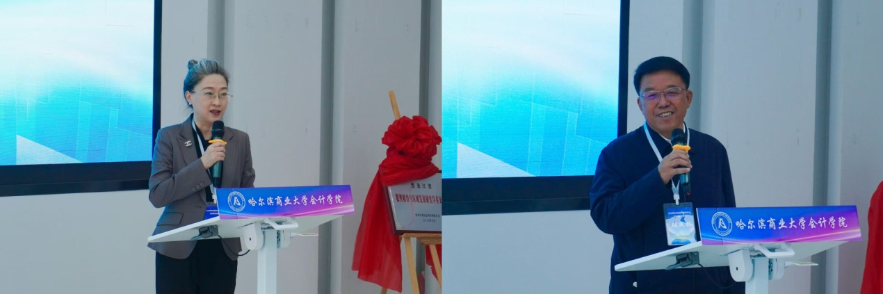 基地协作单位、黑龙江省财政厅会计管理局副局长王燕、黑龙江省农业投资集团有限公司原总会计师魏成林致辞。他们表示,将在资源协调、数据服务、实践落地、人才联合培养等方面给予基地全力支持,共同为基地的发展贡献力量。