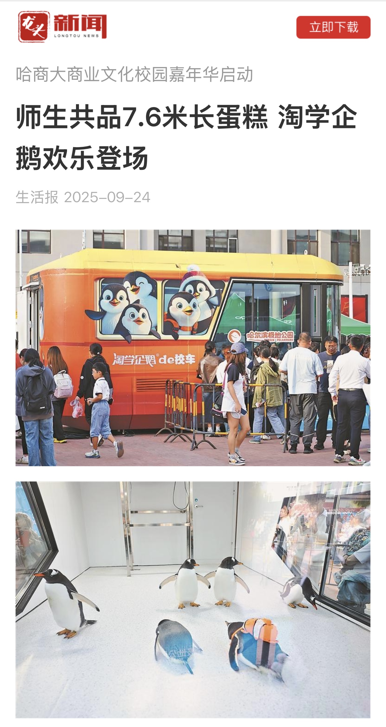 点击查看原文:师生共品7.6米长蛋糕 淘学企鹅欢乐登场