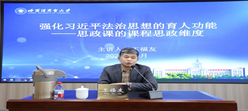揭牌仪式后,王福友以《强化习近平法治思想的育人功能——思政课程的课程思政维度》为题作专题讲座。他指出,思政课程与其他课程一样具有知识性和思政性两个面向,既要从知识性面向讲深习近平法治思想的历史、理论和实践逻辑,更要深入研究并讲透习近平法治思想的思政面向,强化育人功能,讲清楚基于理论伟力的“大道理”,讲清楚契合商科专业特点的“中道理”,讲清楚助力学生成长的“小道理”。