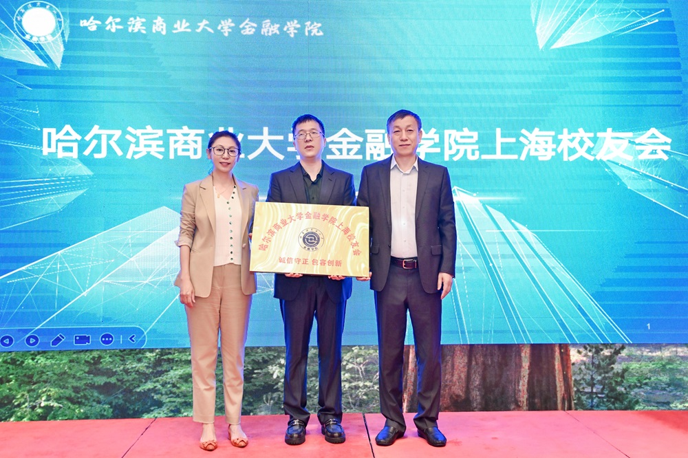 主持人宣读了哈尔滨商业大学金融学院上海校友会成员名单。吴晓光、李陈亚共同为上海校友会授牌。