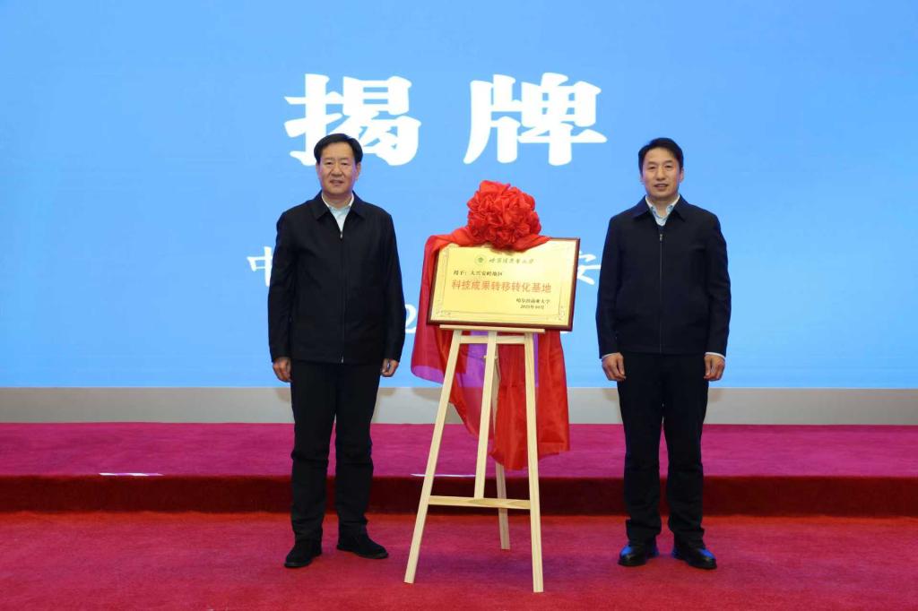 我校党委副书记、校长李景义与大兴安岭地委副书记、行署专员王青伟共同为“科技成果转移转化基地”揭牌