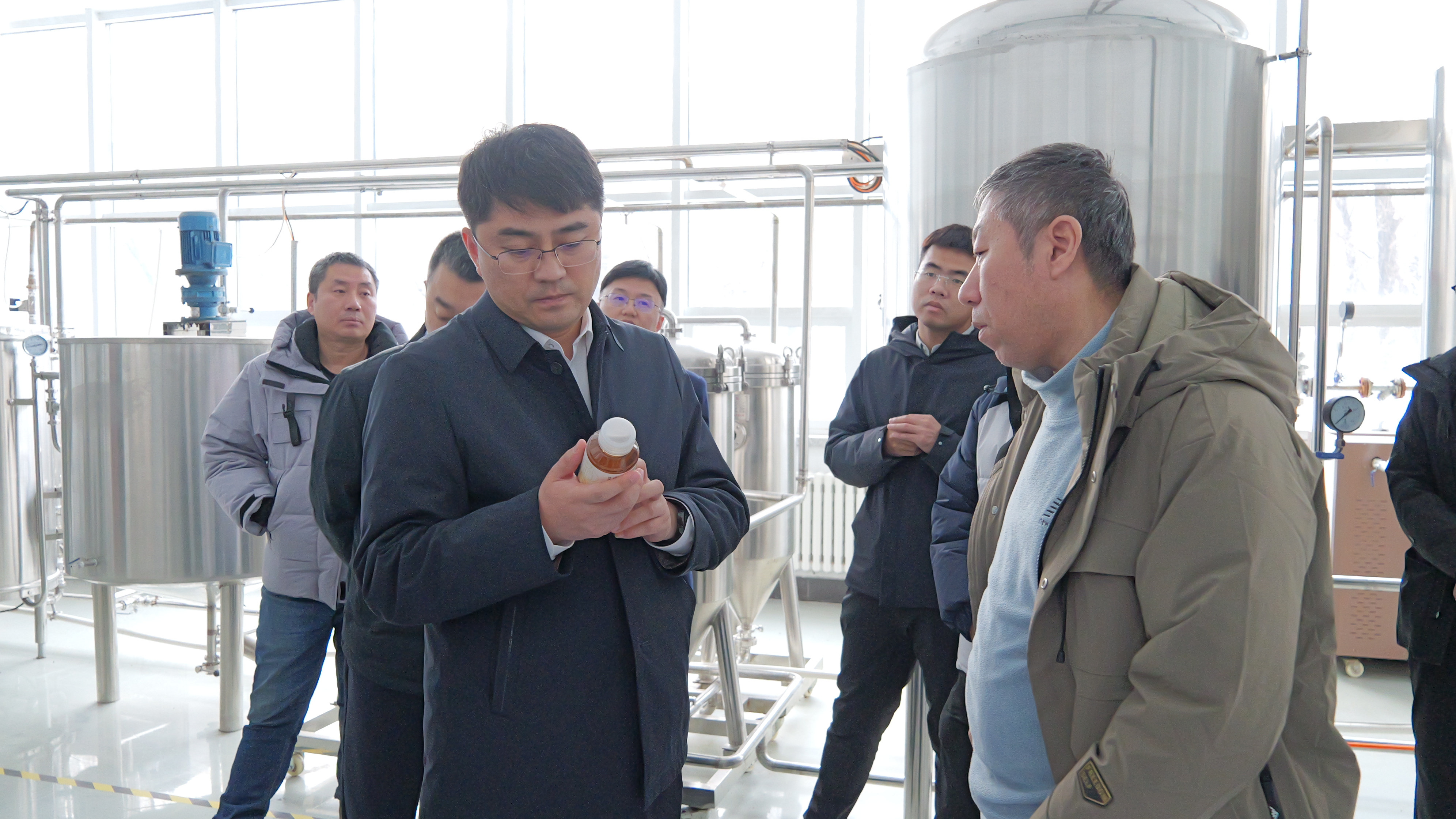 会后,王浩一行前往食品工程学院参观,考察学院饮料相关成果转化落地情况。