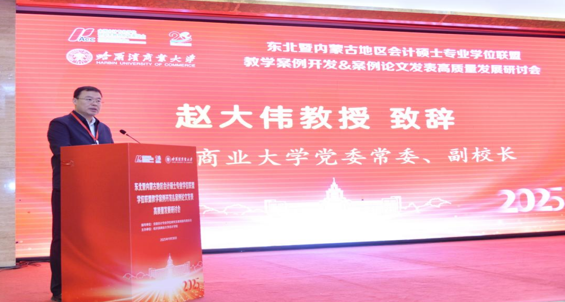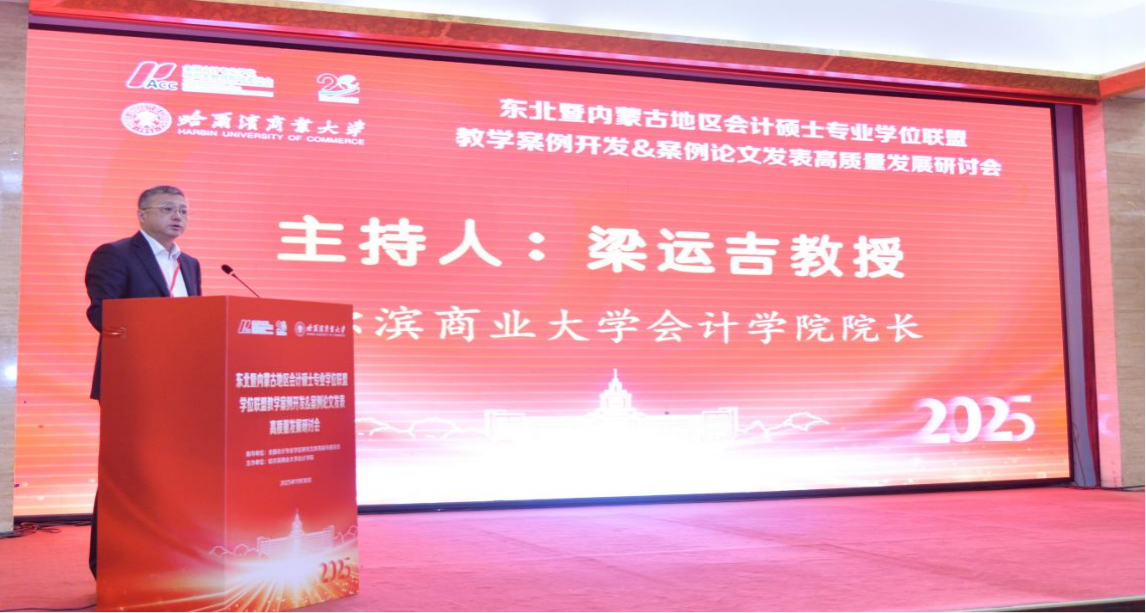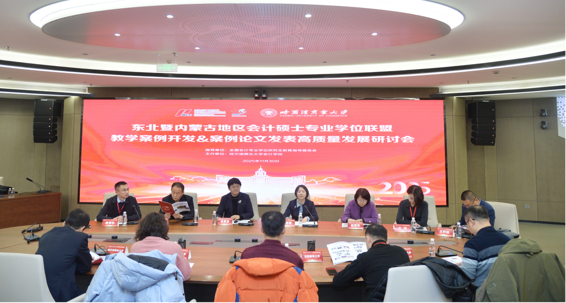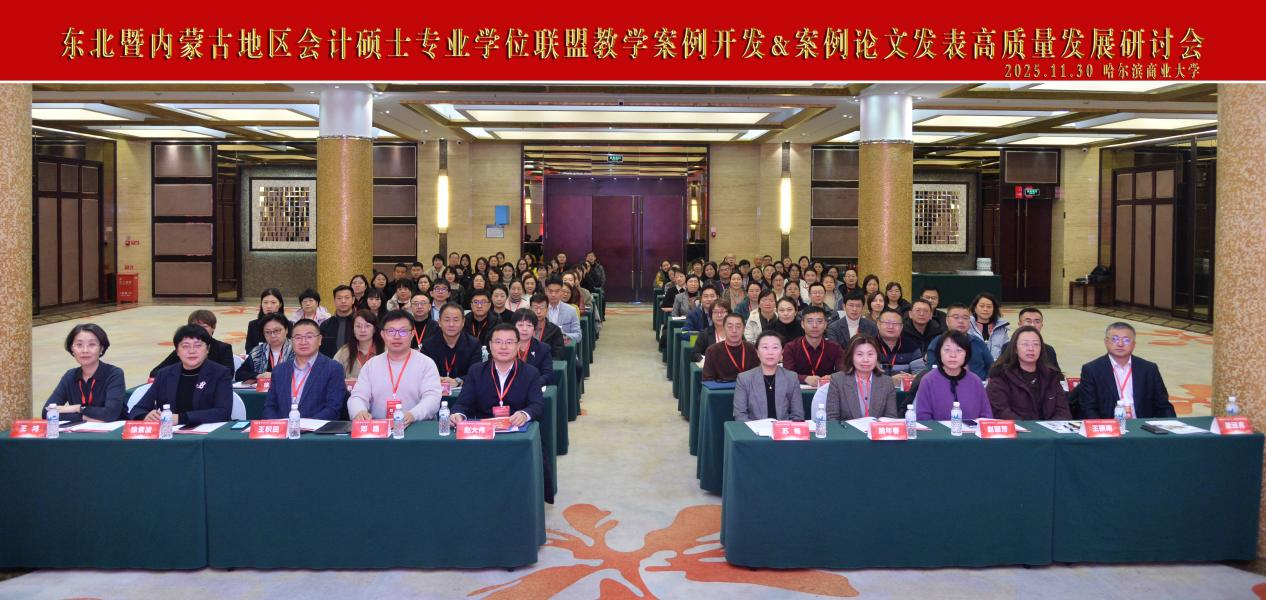 11月30日,由全国会计专业学位研究生教育指导委员会(以下简称会计教指委)指导、哈尔滨商业大学会计学院主办的“东北暨内蒙古地区会计硕士专业学位联盟教学案例开发&案例论文发表高质量发展研讨会(2025)”在哈尔滨举办。哈尔滨商业大学党委常委、副校长赵大伟,会计教指委秘书处主任苏畅出席开幕式并致辞。北京航空航天大学经济管理学院博士生导师、北航深圳研究院副院长邓路,《财会通讯》杂志社执行主编熊年春,东北农业大学现代农业案例中心执行主任、经济管理学院案例研发中心主任、MPAcc教育中心主任王积田,以及来自东北财经大学、东北大学、内蒙古大学、东北师范大学、哈尔滨工业大学、哈尔滨商业大学、辽宁大学、吉林财经大学、内蒙古财经大学等东北及内蒙古地区38家100余位具有会计硕士专业学位授权点的领导、专业负责人和教师出席研讨会,共研教学案例开发和发表精品论文,赋能区域会计硕士联盟高质量发展。哈尔滨商业大学会计学院院长梁运吉教授主持会议开幕式。
