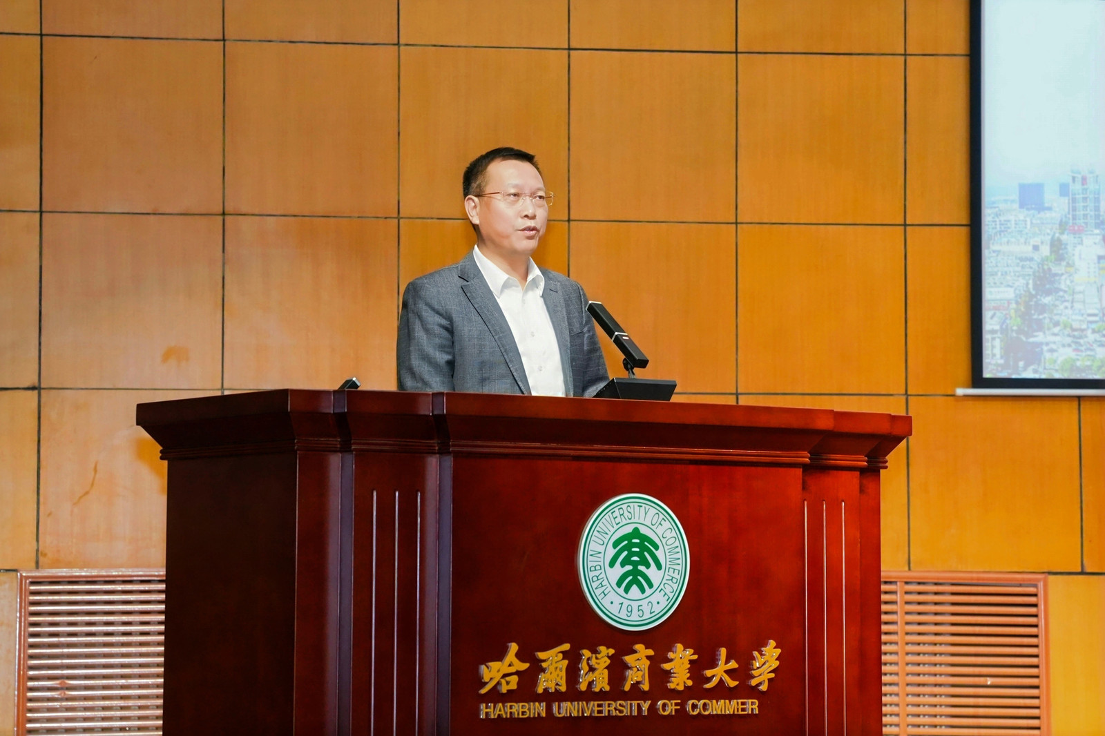 10月24日,“百校联动 就在义乌”2025年义乌市全国高校巡回招聘——哈尔滨商业大学专场招聘活动举办。义乌市人大常委会党组成员、副主任王瑞铨带队参会,市委组织部副部长、市人社局党委书记、局长王国成等多位领导,以及60余家义乌重点企业共同出席。哈尔滨商业大学党委副书记姜国峰出席会议,各学院党委副书记、毕业班辅导员、2026届毕业生代表到场参会,活动由大学生就业创业指导中心主任潘俊峰主持。