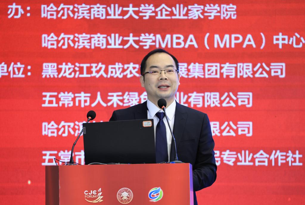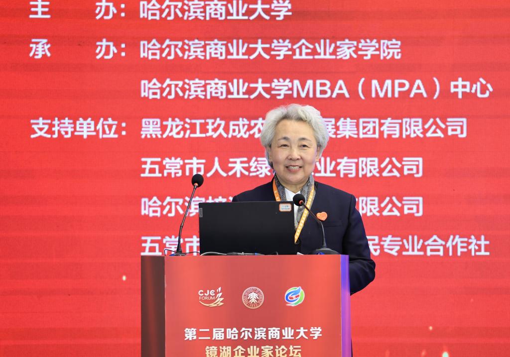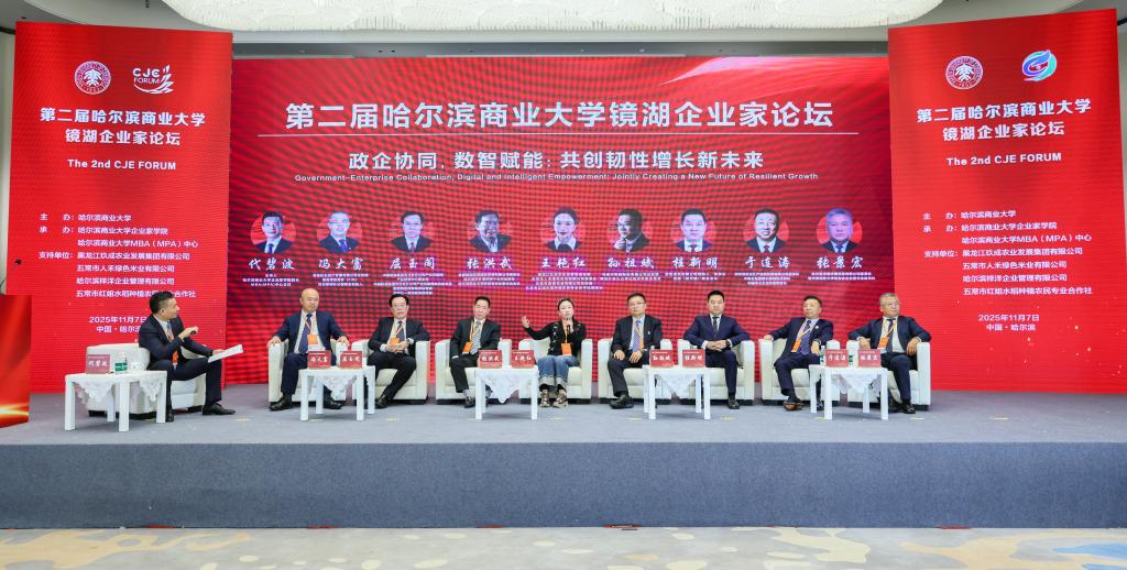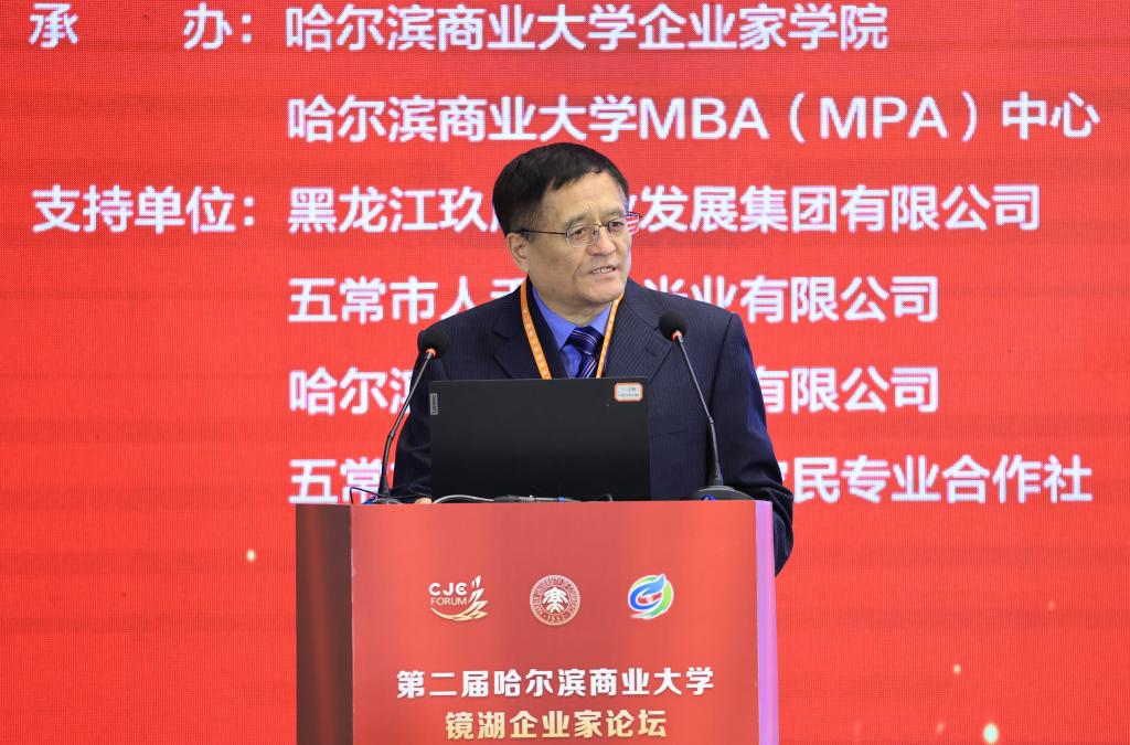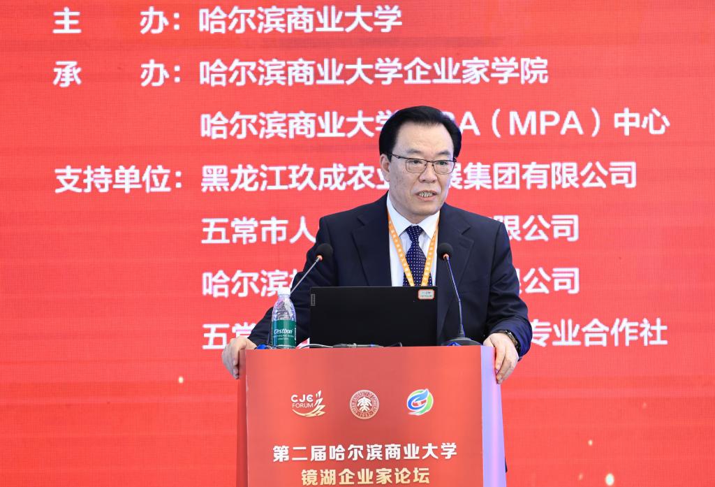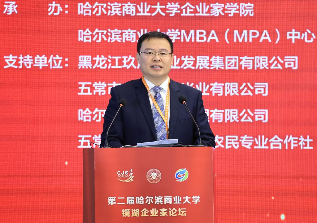 11月7日,由哈尔滨商业大学主办,哈尔滨商业大学企业家学院、MBA(MPA)中心承办,玖成农业发展集团作为支持单位的第二届哈尔滨商业大学镜湖企业家论坛在哈尔滨友谊宫成功举行。本届论坛以“政企协同,数智赋能:共创韧性增长新未来”为主题,汇聚了来自政府、高校、企业家代表、MBA与MPA校友及师生代表共500余人,共同探讨发展大计,擘画振兴蓝图。论坛由哈尔滨商业大学企业家学院院长、MBA(MPA)中心主任代碧波主持。