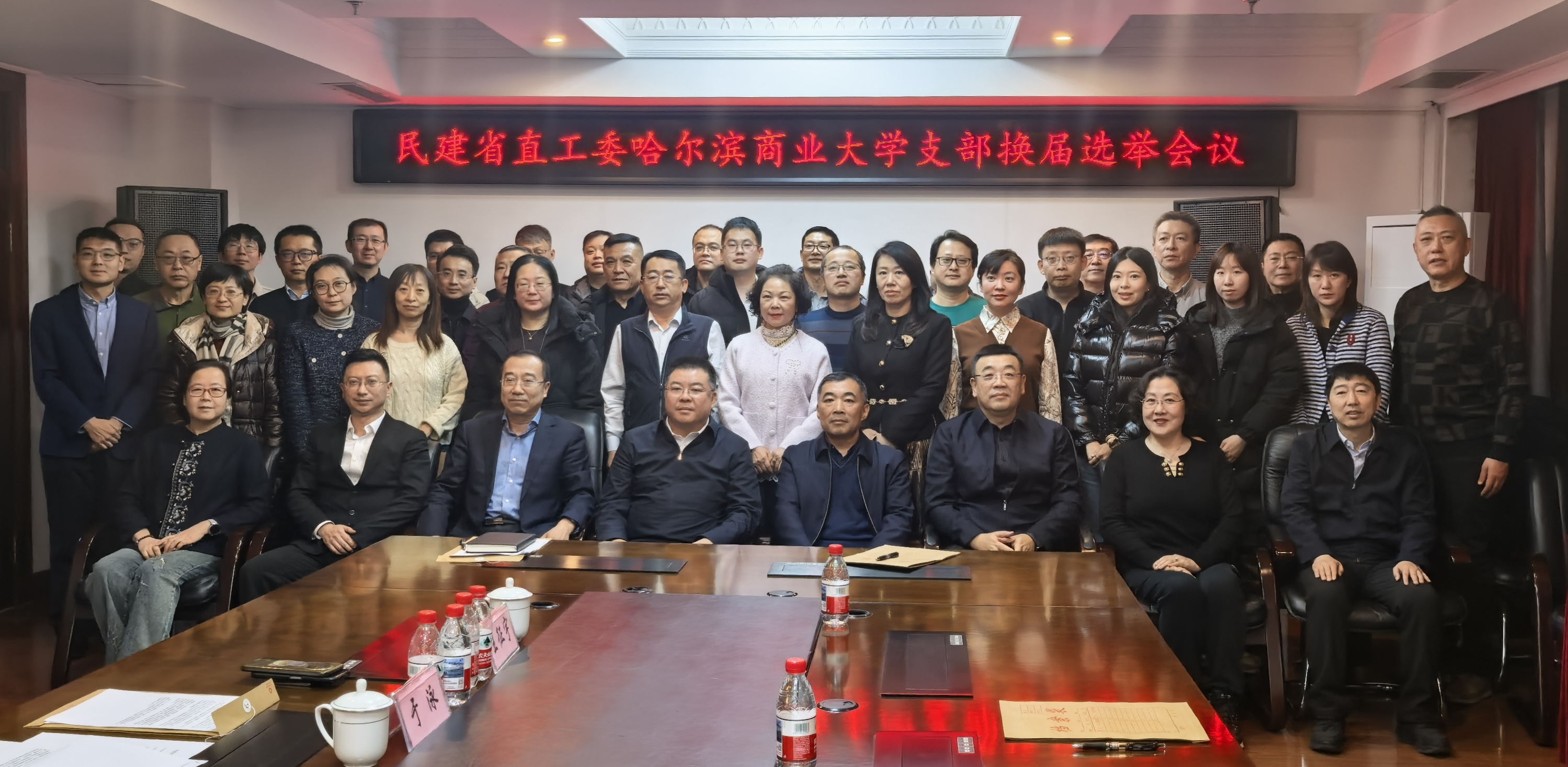 12月17日下午,民建哈尔滨商业大学支部委员会换届选举工作会议在学校行政楼五楼会议室召开。民建省委副主委项义军、秘书长邱瑞、组织部部长郭明;我校党委副书记姜国峰,党委常委、统战部部长潘俊峰出席会议。民建商大支部40位会员参加会议。会议由民建哈商大支部委员会主委、国际交流合作处副处长李恩临主持。