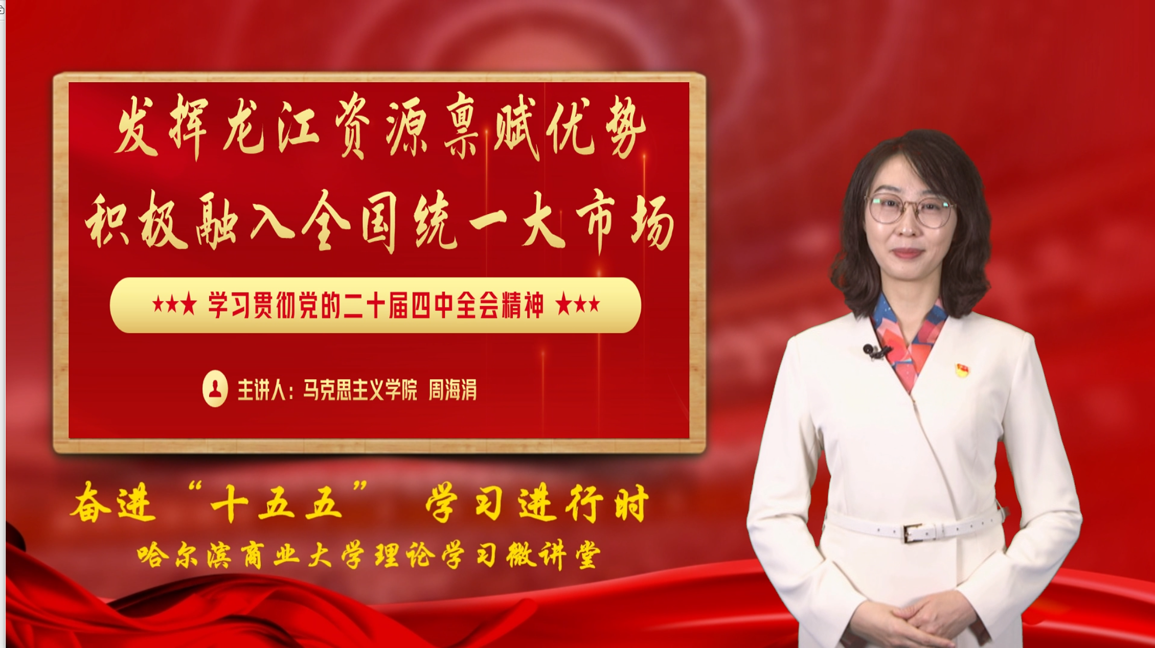 我校省委宣讲团成员还走出校园,到省内多家单位作专题宣讲。金融学院院长姚凤阁教授、党委宣传部副部长宁晓艳教授、经济学院杨守德教授分别到省贸促会、省退役军人事务厅、黑龙江测绘地理信息局等单位,结合专业作全会精神深度解读,发挥高校智力优势、扩大宣讲辐射力,构建起校内外联动的宣传格局。
