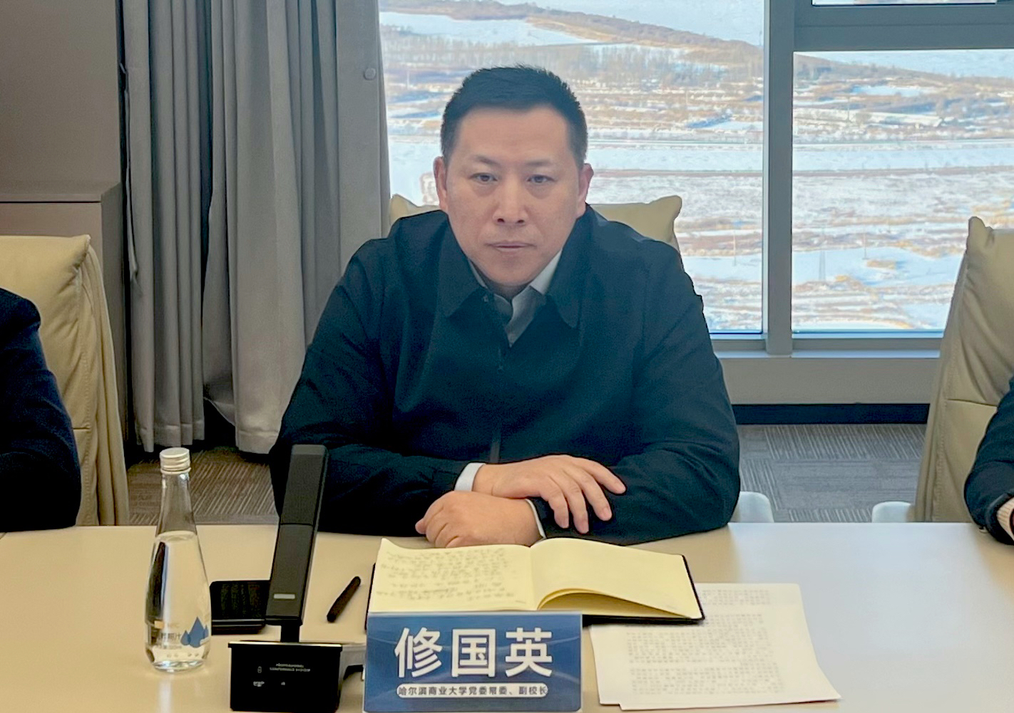 修国英在致辞中介绍了学校发展概况、学科建设、师资力量以及产教融合工作的整体建设情况,指出学校始终坚持“立足龙江、服务地方、面向全国”的办学定位,高度重视校企合作在人才培养中的关键作用,此次与黑龙江易商教育科技有限公司的战略合作,是学校深化产教融合、推进协同育人的又一重要举措,不仅为商务学院学子搭建了从理论学习到实践应用的桥梁,也为学校学科建设与企业产业发展深度融合开辟了新路径,对推动学校高质量发展、服务地方经济社会建设具有重要意义。他希望双方团队能够以此实习实训基地为桥梁,加强沟通协作、凝聚创新合力,深化产教融合、强化协同育人,共同打造黑龙江省校企战略合作与共建实习实训基地的“样板示范”工程,共同为助力龙江全面振兴全方位振兴作出积极贡献。