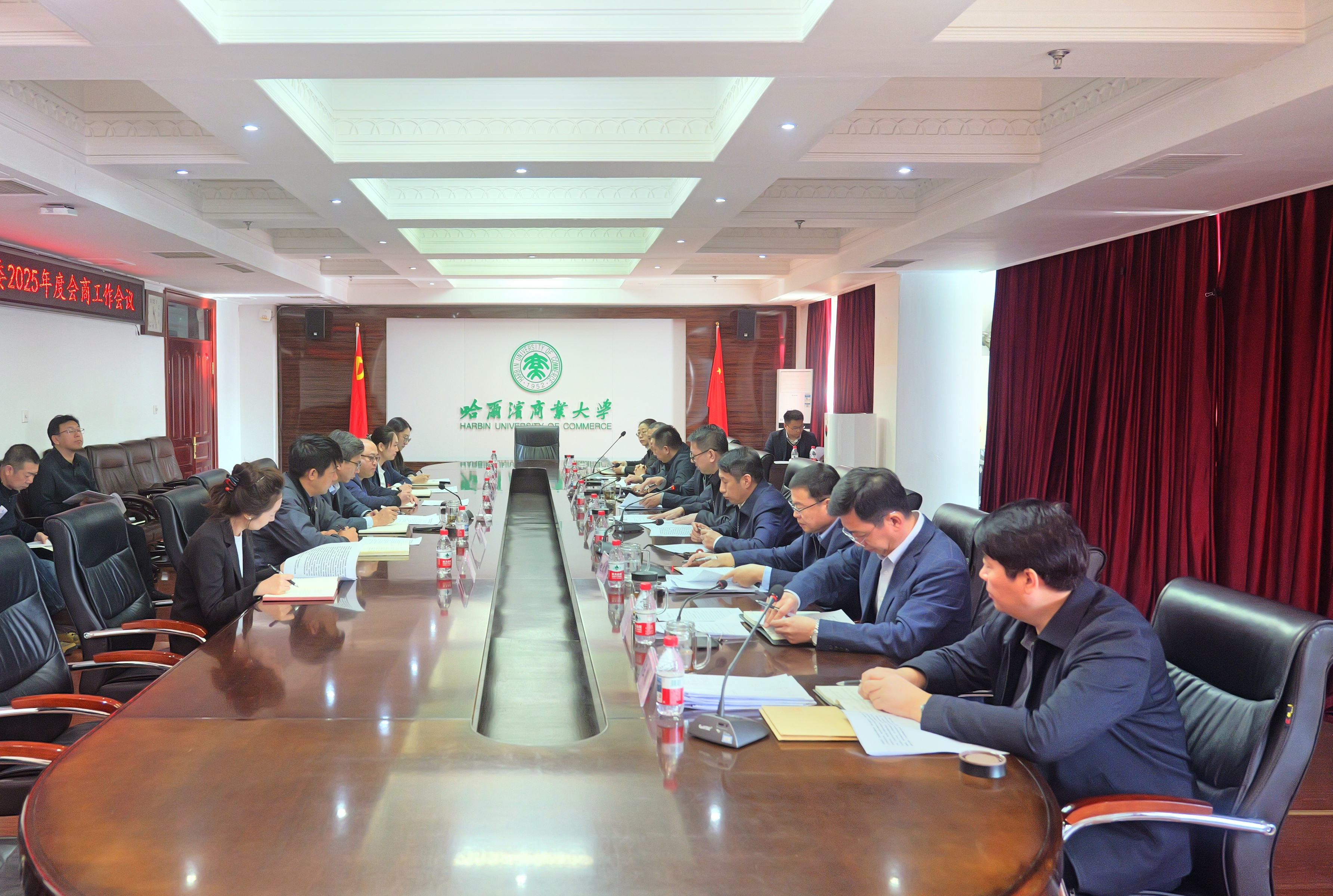 为认真贯彻落实省纪委监委关于会商工作的部署安排及《中共哈尔滨商业大学委员会、党委书记、领导班子其他成员落实全面从严治党责任清单》等文件精神,1月31日上午,学校党委与省监委驻校监察专员办公室在北区行政楼3楼会议室召开2026年专题会商会议。学校领导班子成员、监察专员参加会议,办公室等部门负责人、纪委办公室相关人员列席会议。会议由校党委书记赵广主持。