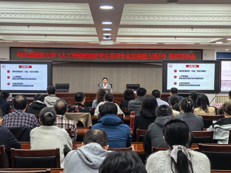 为深入贯彻落实国家教育数字化战略行动,提升研究生导师利用人工智能赋能教育教学能力,9月24日下午,学校在行政楼612会议室召开人工智能赋能研究生导师专业发展能力提升培训会。校党委常委、副校长赵大伟,哈尔滨工业大学邱微教授出席会议,各学院研究生导师参加会议。会议由赵大伟主持。