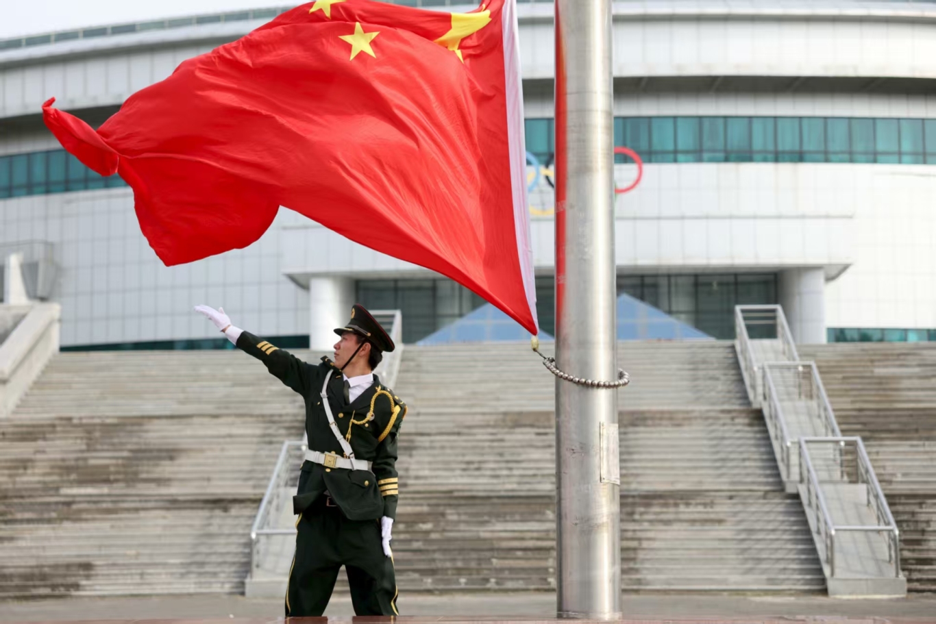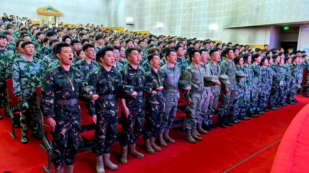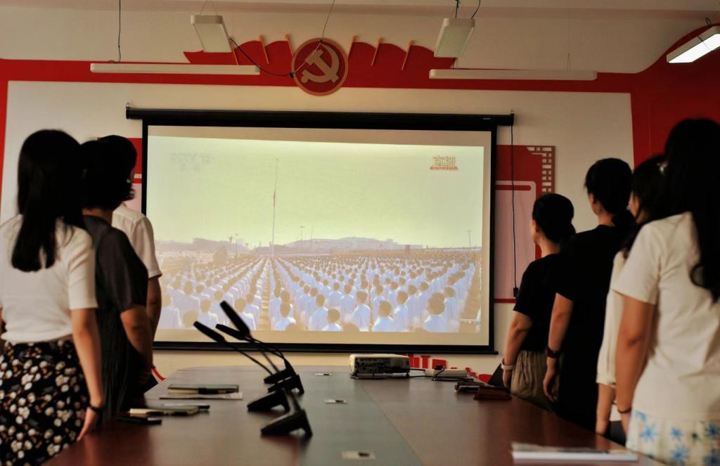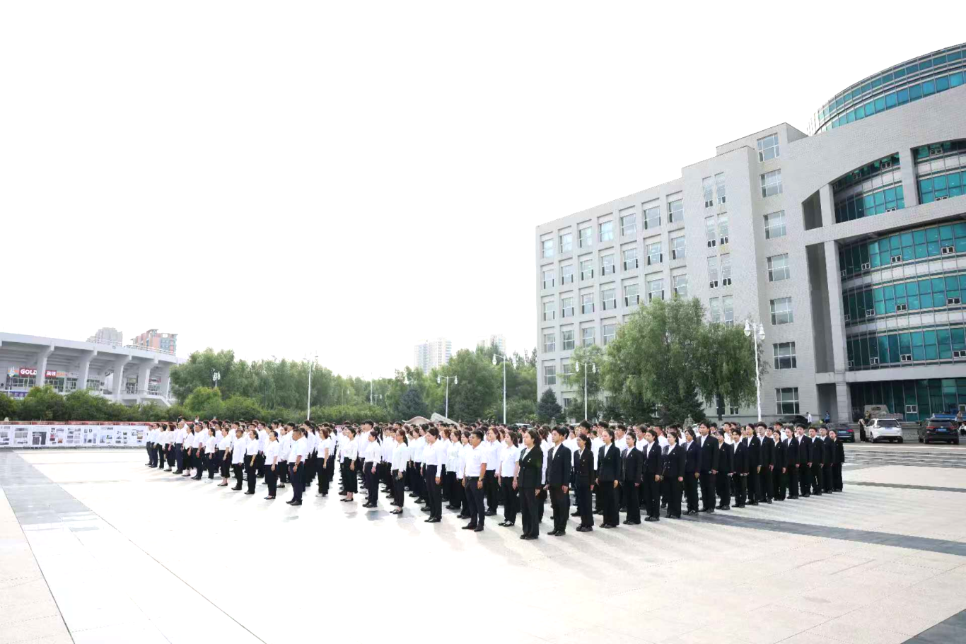 伴随着雄壮的国歌声,鲜艳的五星红旗冉冉升起。全体师生面向国旗肃立致敬,铿锵誓言回荡在校园上空:“铭记历史,珍爱和平;强国有我,请党放心!”