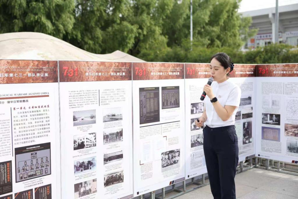 升旗仪式结束后,由我校与哈尔滨市侵华日军第七三一部队罪证陈列馆联合举办的《反人类暴行——侵华日军第七三一部队罪证展》面向师生开放参观。在陈列馆讲解员的带领下,参观师生通过图片展讲解、观看实物复刻、场景还原等方式,深入了解侵华日军反人类罪行,让历史警钟长鸣。