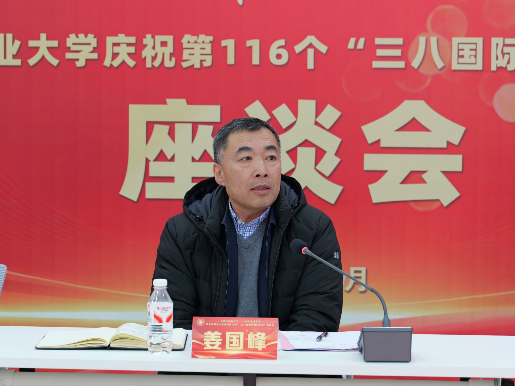 春风送暖,芳华绽放。为热烈庆祝第116个“三八”国际劳动妇女节,凝聚巾帼力量、共话使命担当,3月6日下午,我校在B区大学生活动中心举行“立德树人践使命,巾帼奋进谱新篇”主题座谈会。校党委副书记、工会主席姜国峰出席座谈会;党委常委、统战部部长潘俊峰,党委常委、宣传部部长焦晋鹏,校“三八”红旗集体(标兵岗)获奖代表、杰出巾帼工作者获奖个人,以及相关职能部门负责人,职能部门女干部、管理部门女教工代表,各学院党委书记、基层工会主席、一线女教师代表等参加会议。焦晋鹏主持会议。