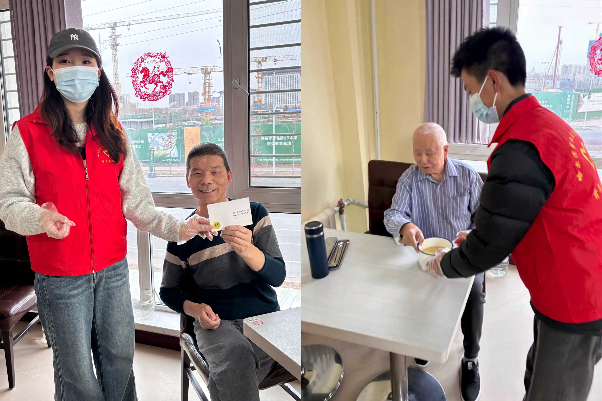 银龄陪伴,爱驻夕阳。3月2日,两股青春暖流不约而同地汇入松北区百姓康年老年公寓。旅游烹饪学院的志愿者们送上亲手制作的写满祝福的贺卡,并在晚餐时分,在工作人员指导下有序传递餐食。随后,志愿者们细心地擦拭玻璃,让阳光更暖地照进房间。能源与建筑工程学院的师生们则围坐在老人身边拉家常,倾听岁月故事,为行动不便的老人整理衣物、朗读诗文。不同的服务方式,同样的真挚温情,志愿者们用陪伴驱散孤寂,让尊老敬老的传统美德在代际沟通中传承。