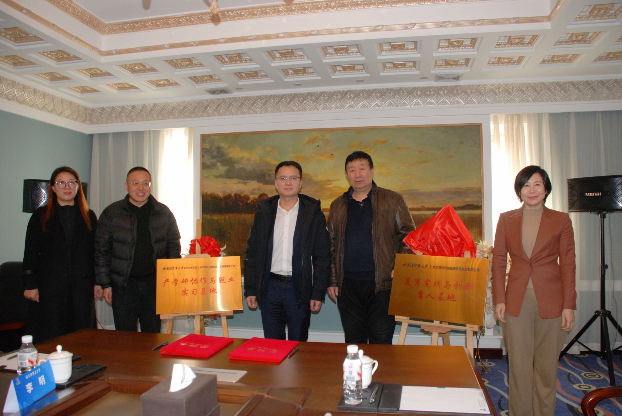 在热烈氛围中,双方共同为两大基地揭牌。此次揭牌标志着我校设计艺术学院与伏尔加庄园校企合作迈入规范化、深度化、常态化新阶段,为双方在人才培养、实践教学、科研创新、成果转化等方面协同发力奠定坚实基础,为学校应用型人才培养搭建更广阔实践平台。