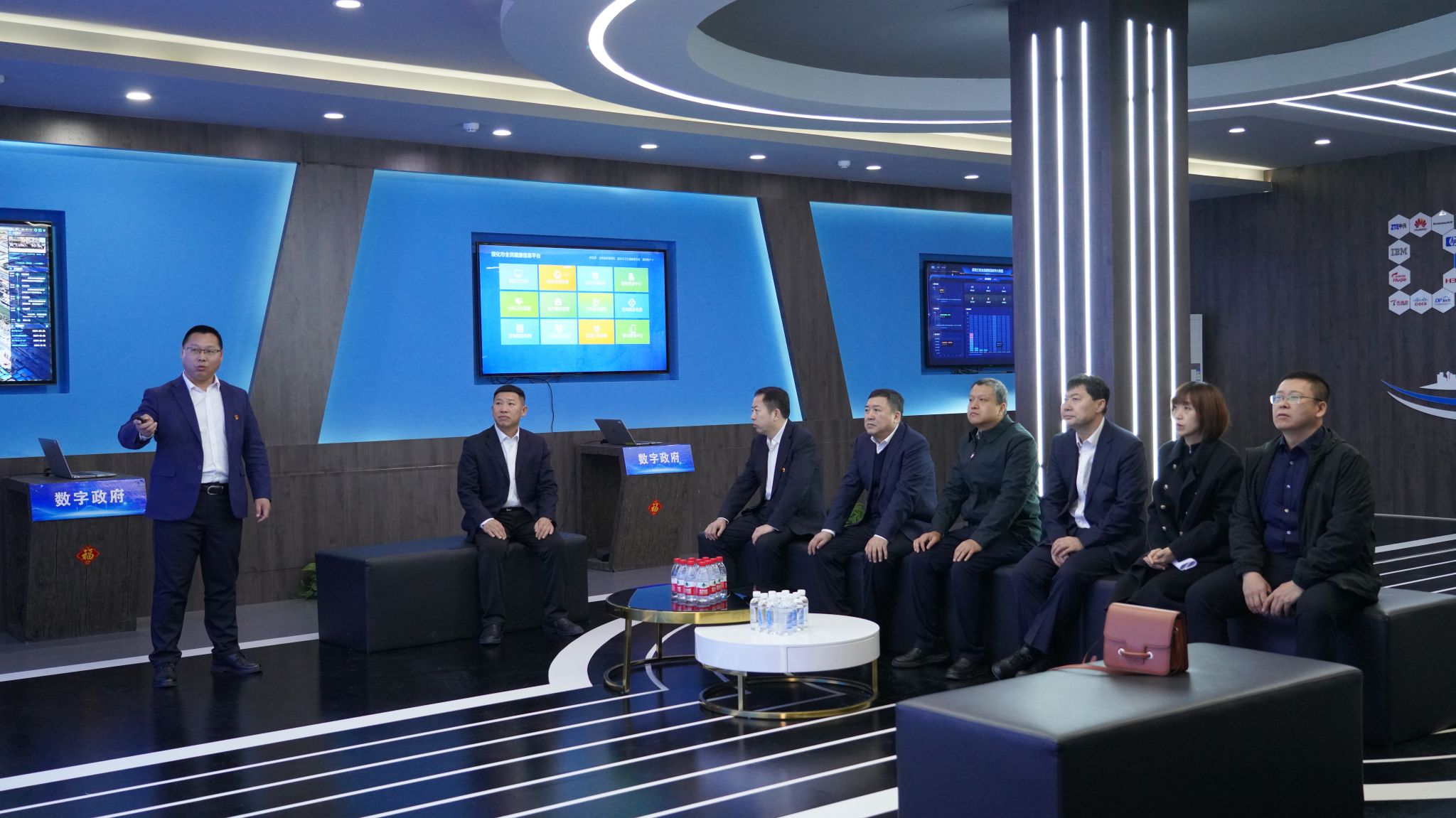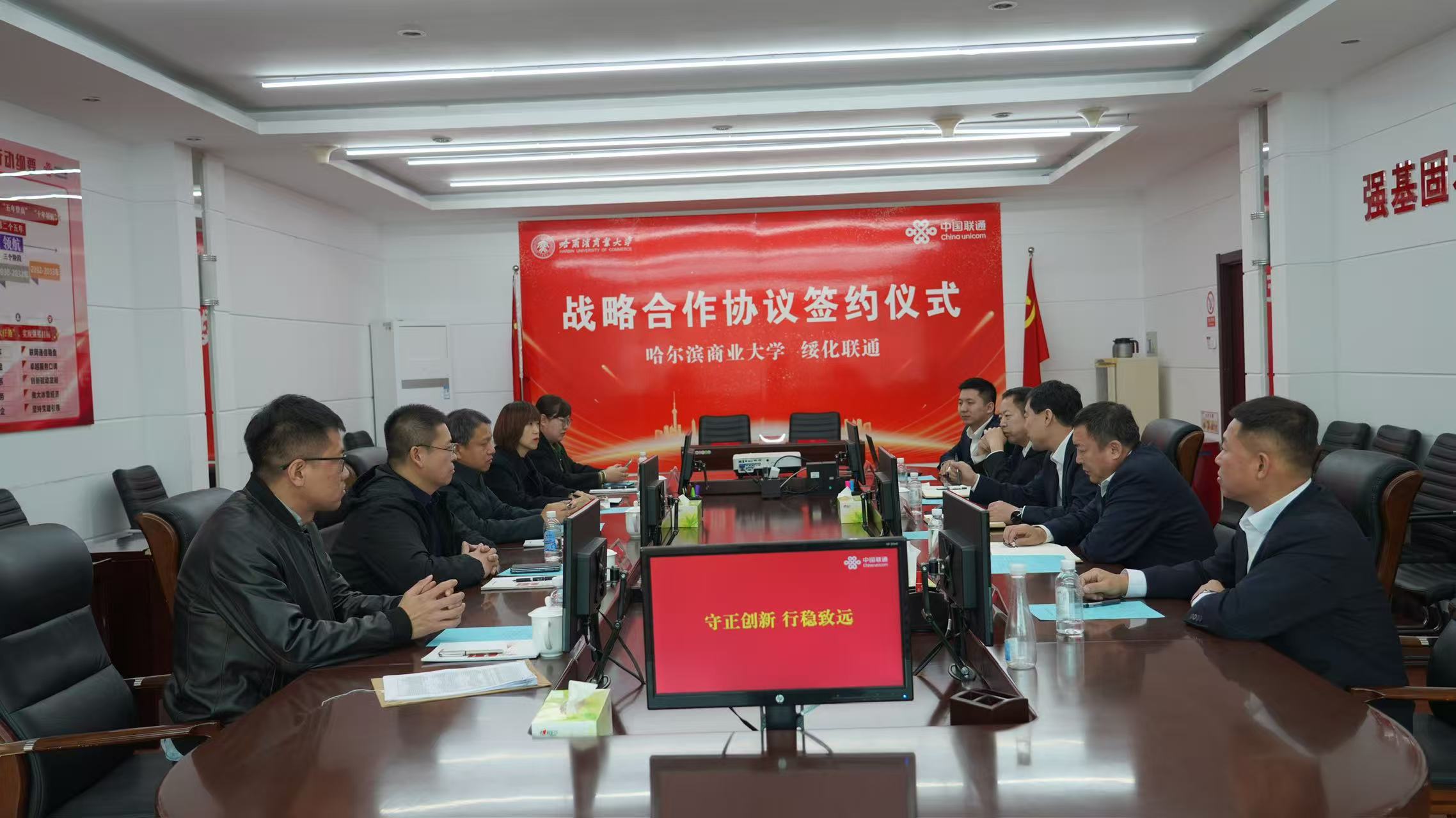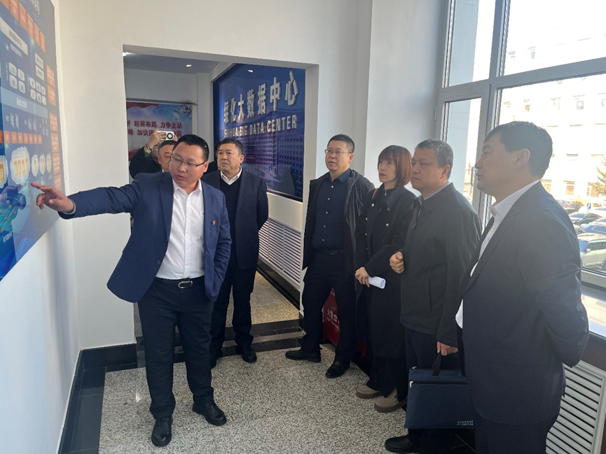 绥化市联通公司总经理滕学斌、副总经理刘海涛、党委组织部(人力资源部)经理韩继野、网络运营事业部经理周立柱及北林区分公司副总经理赵宇鑫等热情接待彭树青一行。在企业陪同下,学校一行首站参观了大数据机房,重点了解数据安全管理与存储技术。随后,在大数据中心听取了“绥化城市大脑”建设情况介绍。该平台通过整合政务、民生、产业等多维度数据,构建了城市运行监测、智能决策支持等核心功能,展现了大数据技术在智慧城市建设中的关键作用。