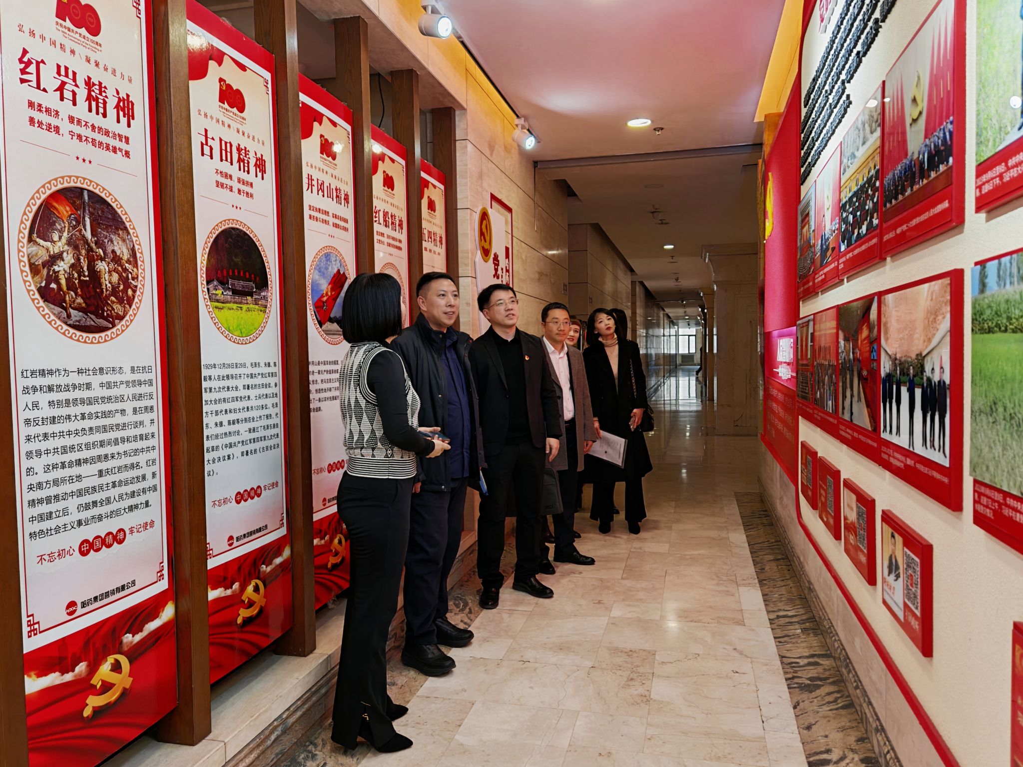 会后,在企业方的陪同下,学校一行实地参观了哈药美术馆与党建墙,沉浸式感受了企业厚重的文化艺术底蕴,系统了解了其丰富多元的党建工作成果。