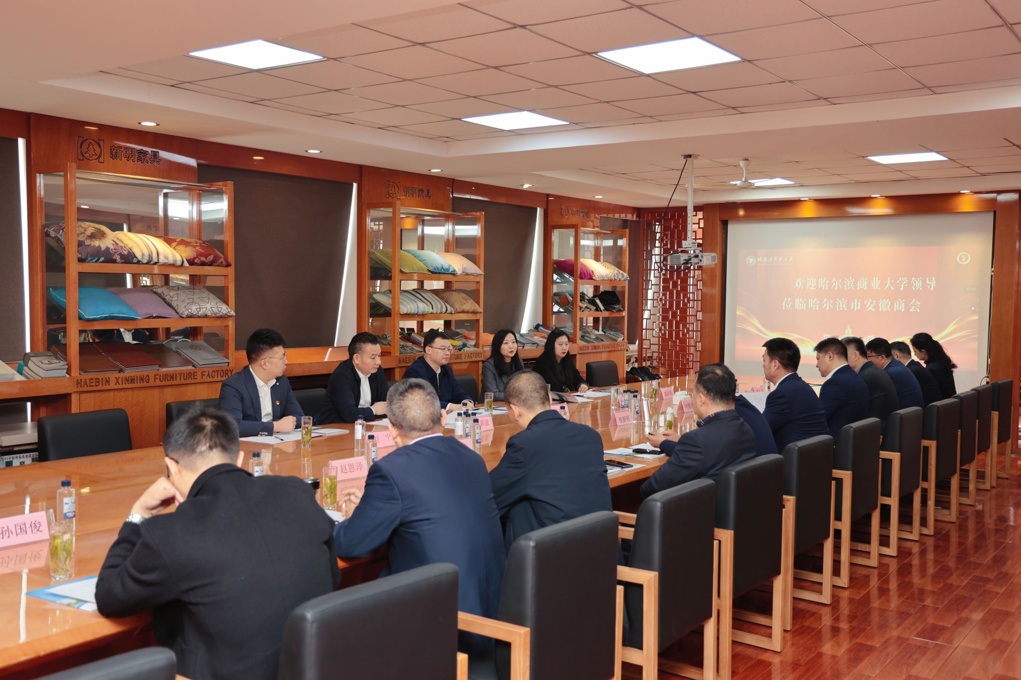 安徽商会会长、新明家具有限公司董事长桂新明,商会党支部书记、和济中医医院总经理叶程艳,以及来自黑龙江北方有色工程管理有限责任公司、正大门业、华源(哈尔滨)药业、黑龙江全味生物科技有限公司、黑龙江枞川物业管理有限公司、哈尔滨德恩木业有限公司、哈尔滨秋豪单记餐饮管理有限公司、哈尔滨万创广告有限公司、哈尔滨维尔沃农业科技有限公司等多家企业负责人热情接待学校一行。双方召开了校企合作交流座谈会,围绕企业用人需求、校企合作方向、人才培养体系改革等议题展开深入交流。